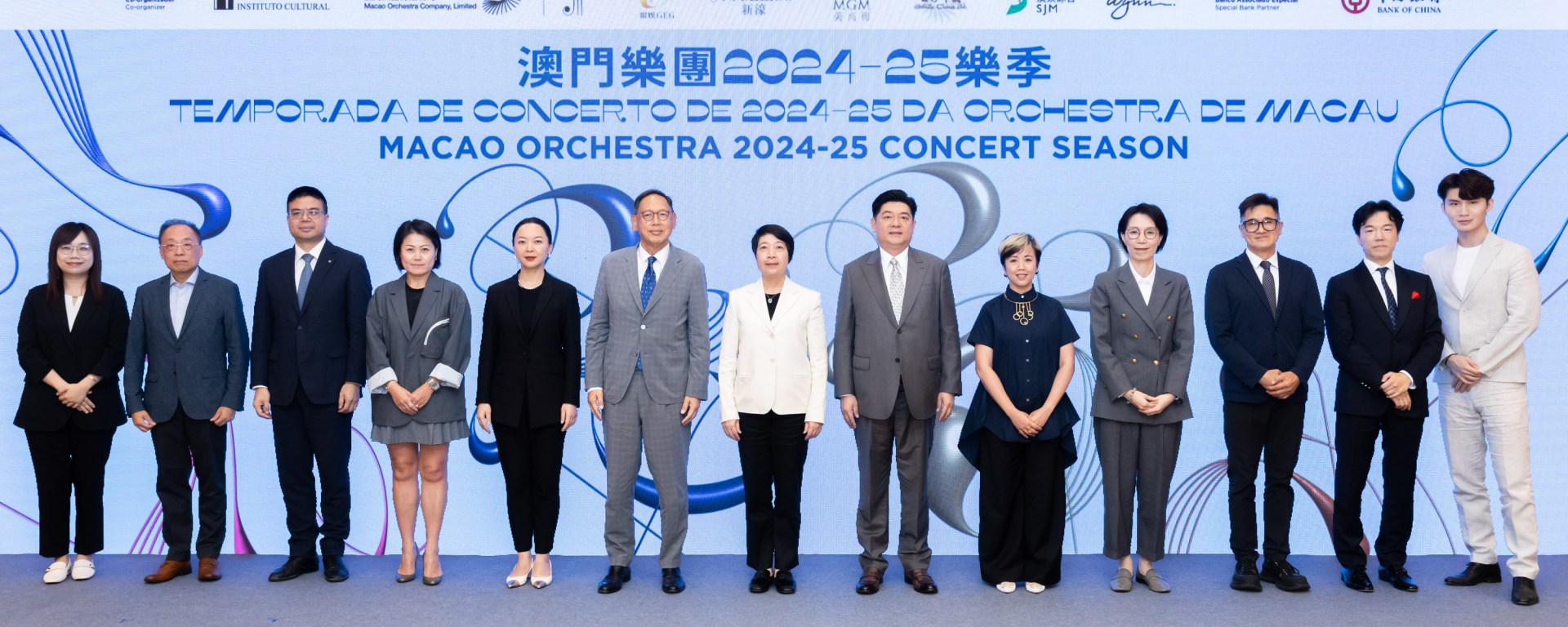 澳門樂團2024-25樂季發佈會於8月5日舉行,出席嘉賓包括:文化局局長、澳門樂團有限公司董事長梁惠敏,銀河娛樂集團董事程裕昇,新濠博亞娛樂首席顧問黃昇雄,永利澳門有限公司市場營銷總裁鄒文瑜,美高梅品牌策劃高級副總裁廖頴琦,澳娛綜合度假股份有限公司企業品牌發展及市場推廣高級副總裁梁珮兒,金沙中國有限公司企業傳訊及社會事務副總裁江慧賢,中國銀行澳門分行資深業務總監許志瑜,文化局副局長鄭繼明,澳門樂團有限公司董事許健華,澳門樂團音樂總監兼首席指揮廖國敏,澳門樂團有限公司代行政總監林玉,鋼琴家「牛牛」張勝量等。發佈會上,音樂總監廖國敏與鋼琴家「牛牛」即席演奏布拉姆斯的樂曲,預告新樂季首創的致敬音樂家系列演出。
