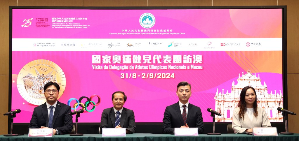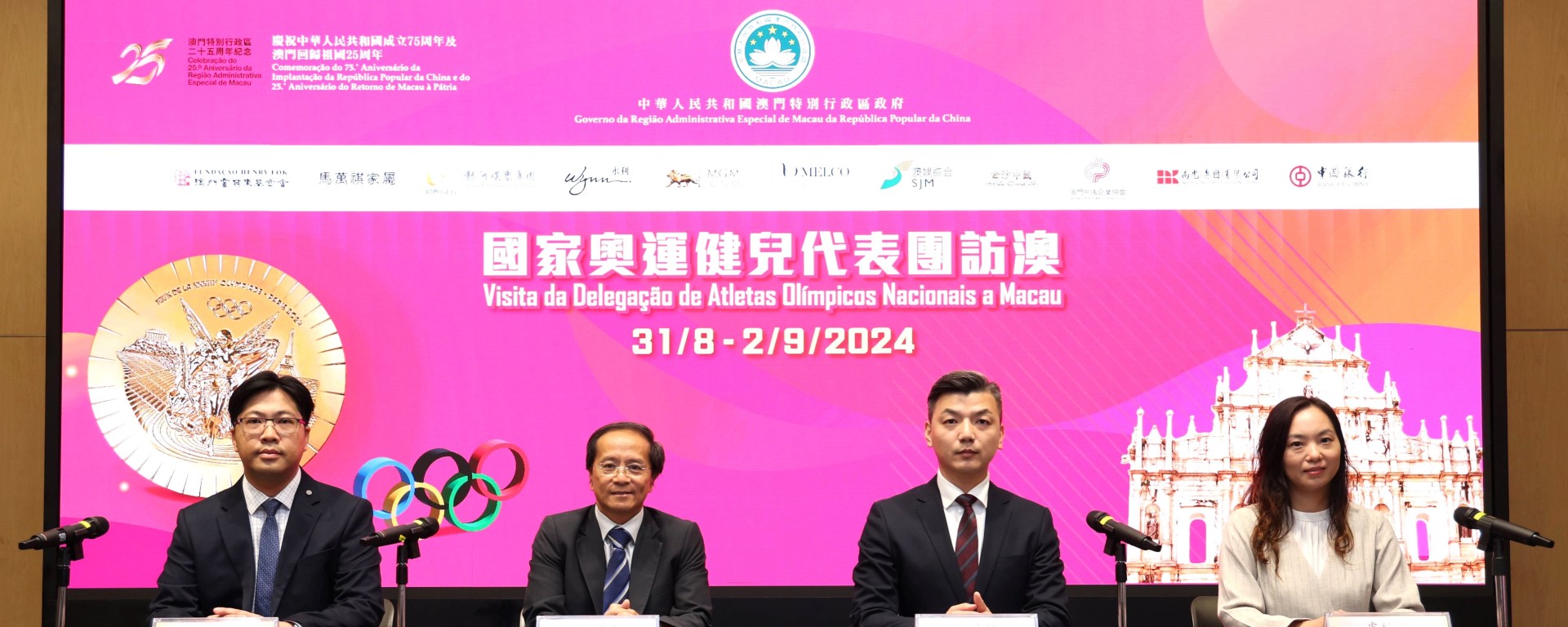 適逢本年為中華人民共和國成立75周年、澳門回歸祖國25周年以及奧運之年,在國家的關懷和支持下,由澳門特別行政區政府、國家體育總局及國務院港澳事務辦公室共同組織國家奧運健兒代表團,年8月31日至9月2日來澳訪問三日。體育局日前舉行新聞發佈會,由體育局代表介紹國家奧運健兒代表團訪澳詳情。