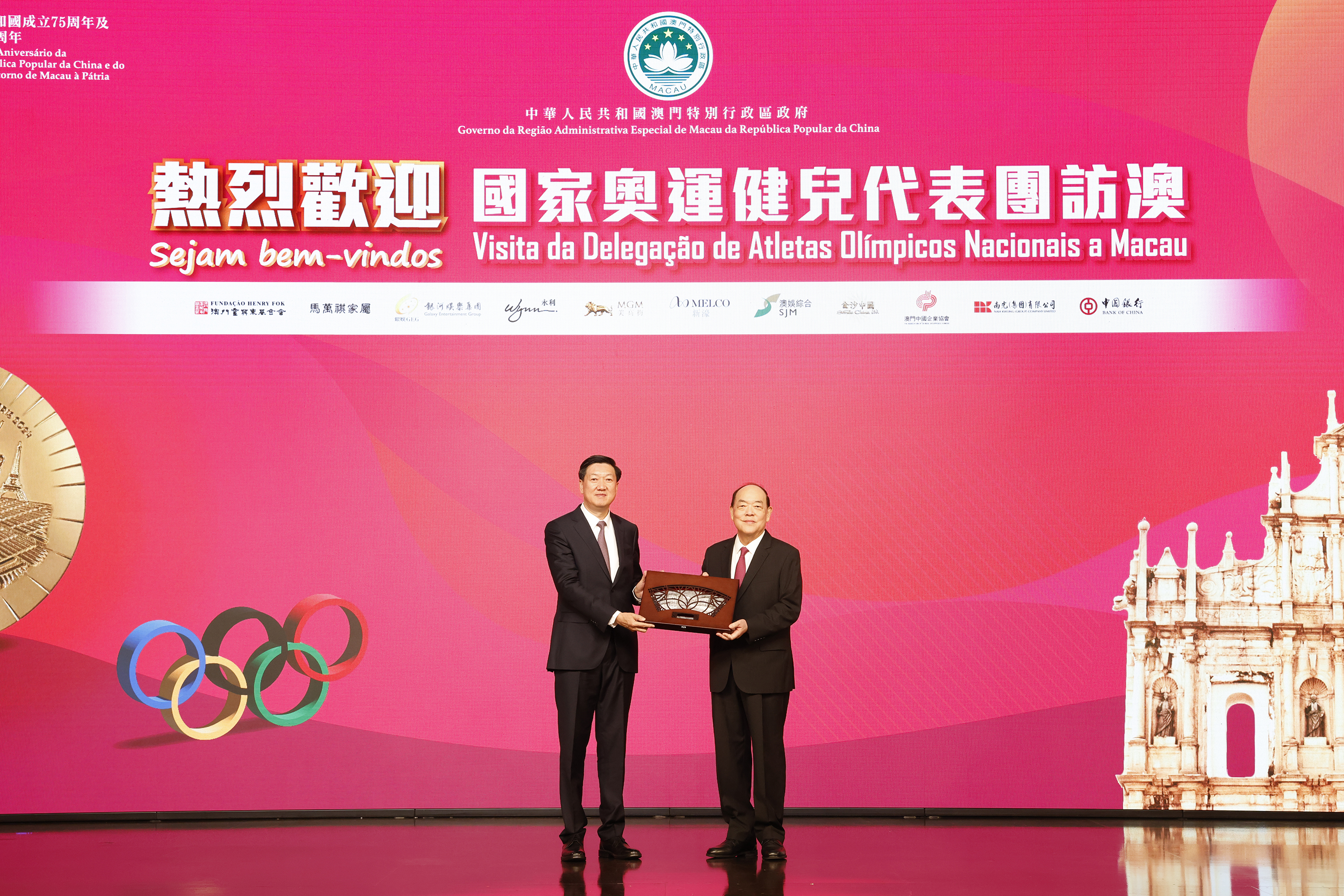 今年是新中國成立75周年,澳門回歸祖國25周年的雙慶之年,行政長官表示,國家奧運健兒代表團的到訪,更為澳門增添了榮光和喜慶。明年將舉行第十五屆全國運動會,澳門是主辦地之一。特區政府將全力參與和配合組委會的工作,攜手廣東、香港,認真貫徹落實二十屆三中全會精神,共同確保全運會各項工作圓滿完成,向着建設體育強國、健康中國的目標不斷邁進,以中國式現代化全面推進強國建設、民族復興偉業。