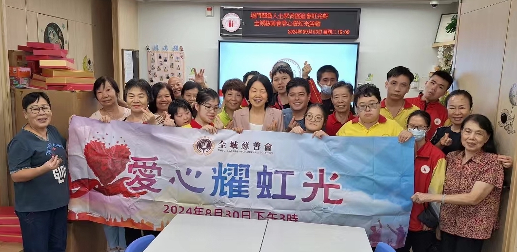 全城慈善會日前舉辦「愛心耀虹光二零二四」活動,探訪澳門弱智人士家長協進會附屬虹光軒,賓主歡聚一堂,場面溫馨歡樂。負責人希望透過活動,喚起社會大眾加深對弱智人士的認知,與社會各界一起,共建關愛共融的社會。