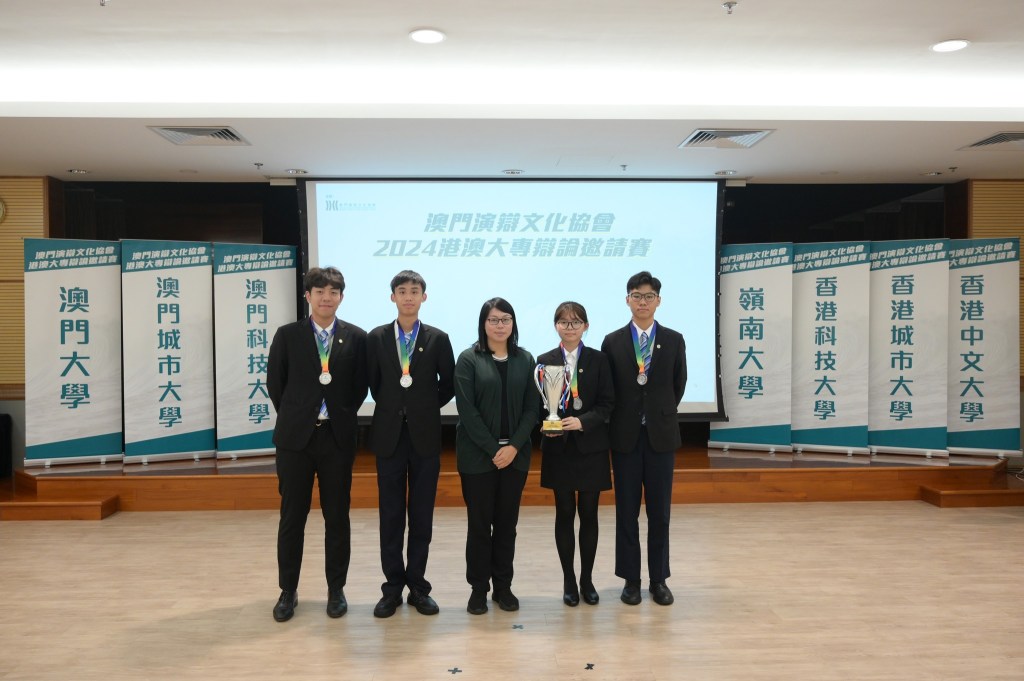 澳門大學廣東話辯論隊在「2024港澳大專辯論邀請賽」與香港中文大學、香港科技大學、香港城市大學、嶺南大學、澳門科技大學和澳門城巿大學就時事議題、青年事務及兩地民生政策進行激辯,並包攬賽事的冠、亞軍殊榮。