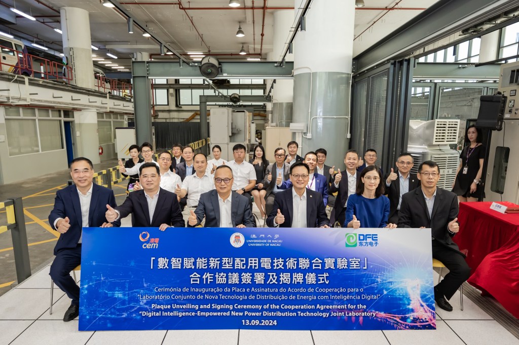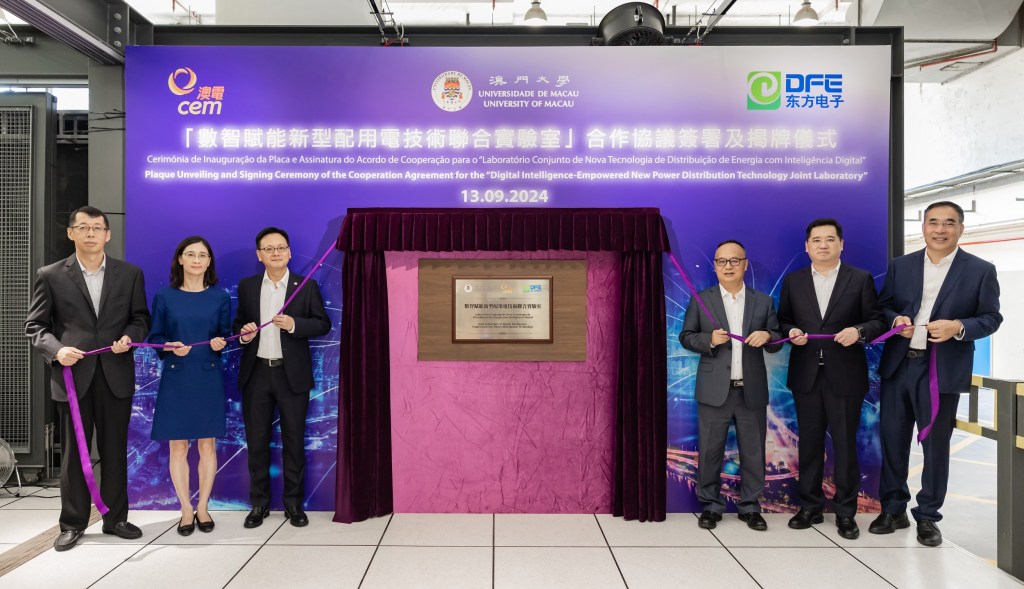 澳門大學與澳門電力股份有限公司及東方電子股份有限公司於9月13日舉行「數智賦能新型配用電技術聯合實驗室」簽署合作協議及揭牌儀式。聯合實驗室將進一步促進澳門電力系統配用電技術的交流及應用實踐,帶動澳門電力行業升級轉型,助力澳門建設智慧城市,並配合國家實現「雙碳」目標。