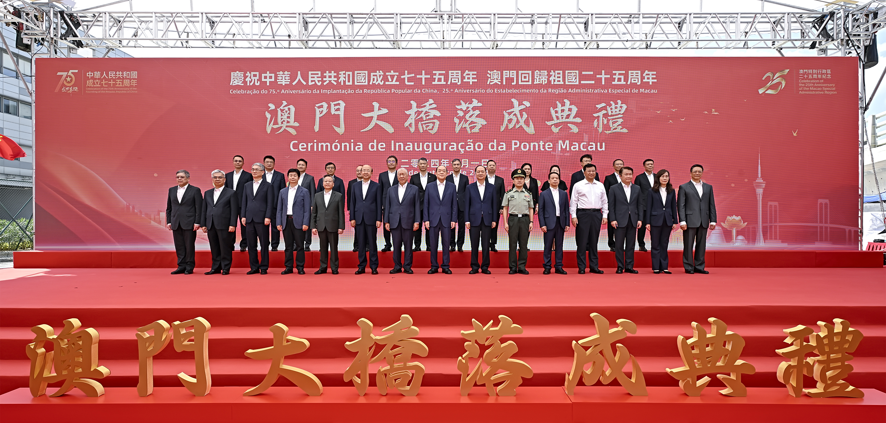 行政長官指出,澳門大橋自2020年3月動工到今天正式落成開通,成為連接澳門半島至氹仔的第四條跨海大橋,這是廣大居民共同期盼的標誌性民生工程,也是對「雙慶」之年的一份美好獻禮。
