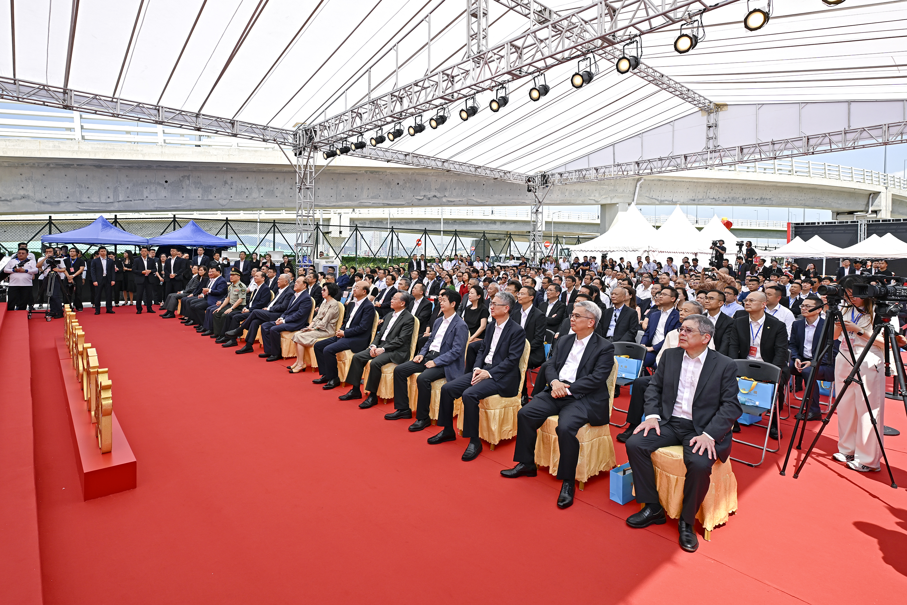 行政長官與一眾主禮嘉賓主持澳門大橋的揭牌儀式後,乘座駕通過澳門大橋前往新城A區。