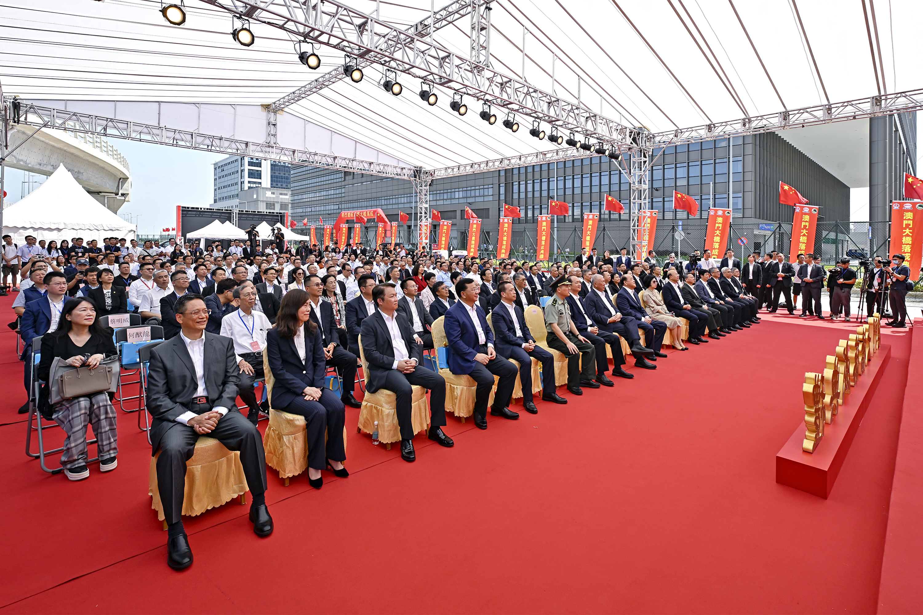 落成典禮當天上午在北安治安警察局總部大樓旁地段舉行。行政長官致辭表示,今年是中華人民共和國成立75周年,也是澳門特別行政區成立25周年,在今天這一舉國同歡的國慶節裡,我們齊聚一堂隆重舉行澳門大橋落成典禮,共同分享大橋開通的喜悅。