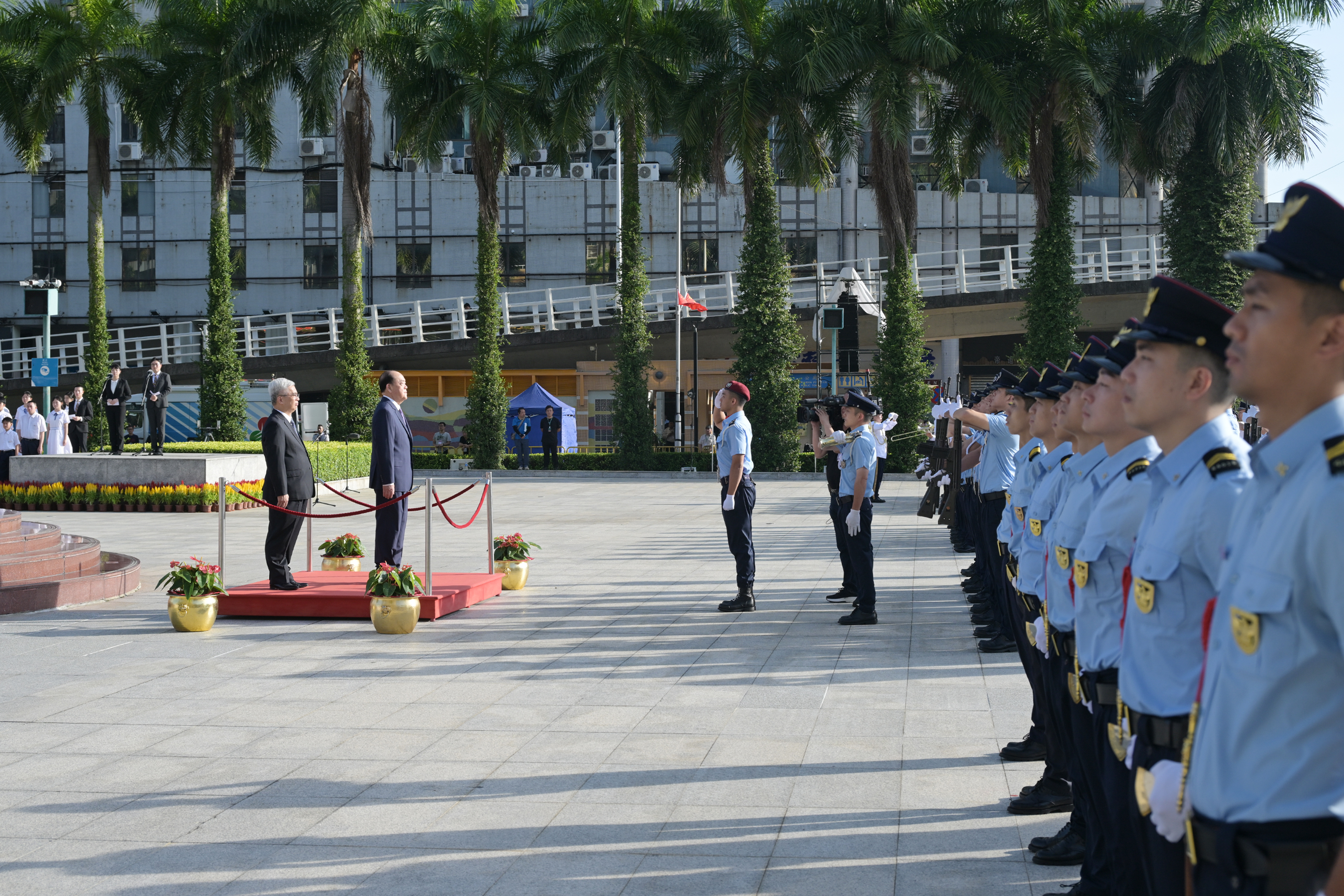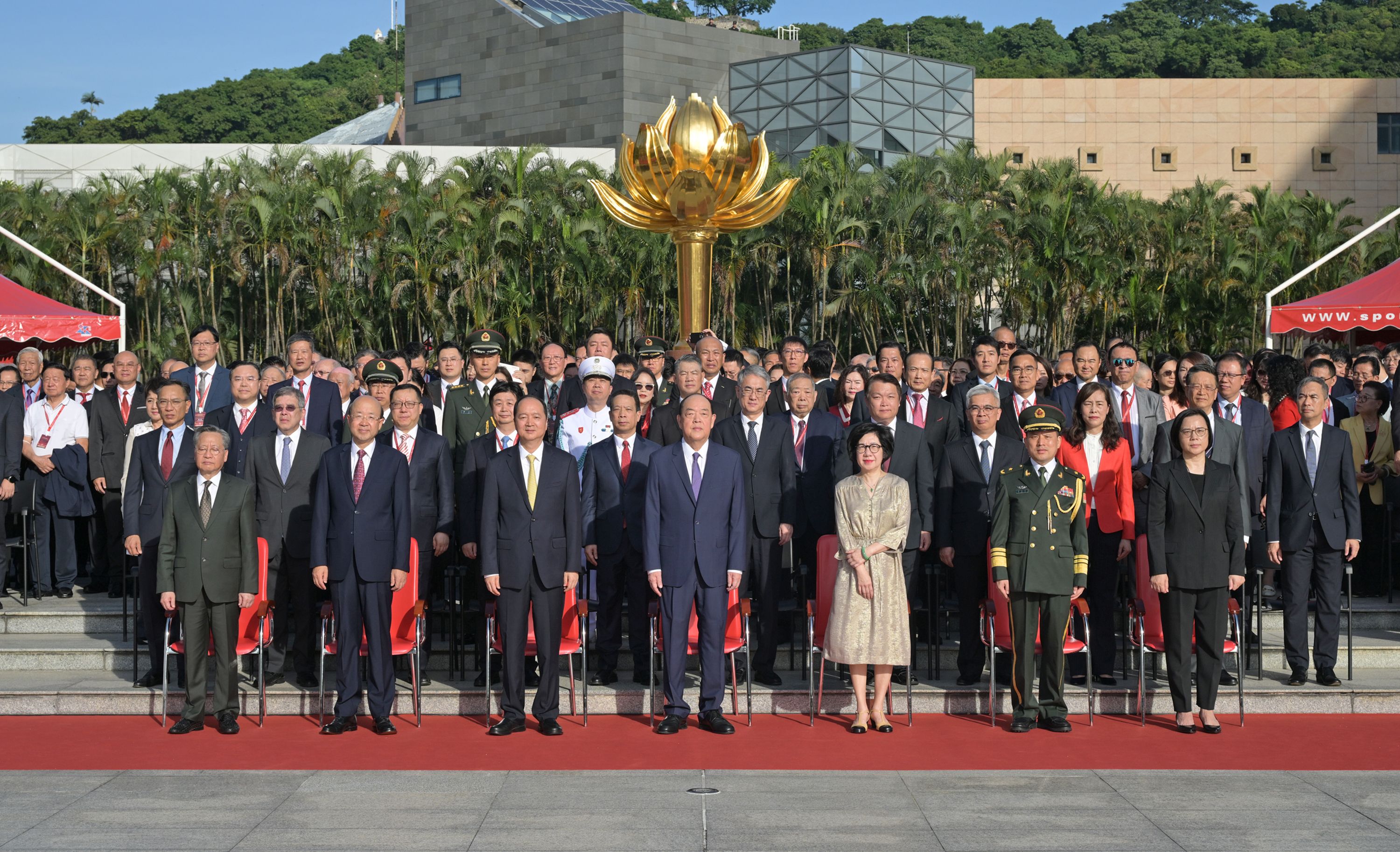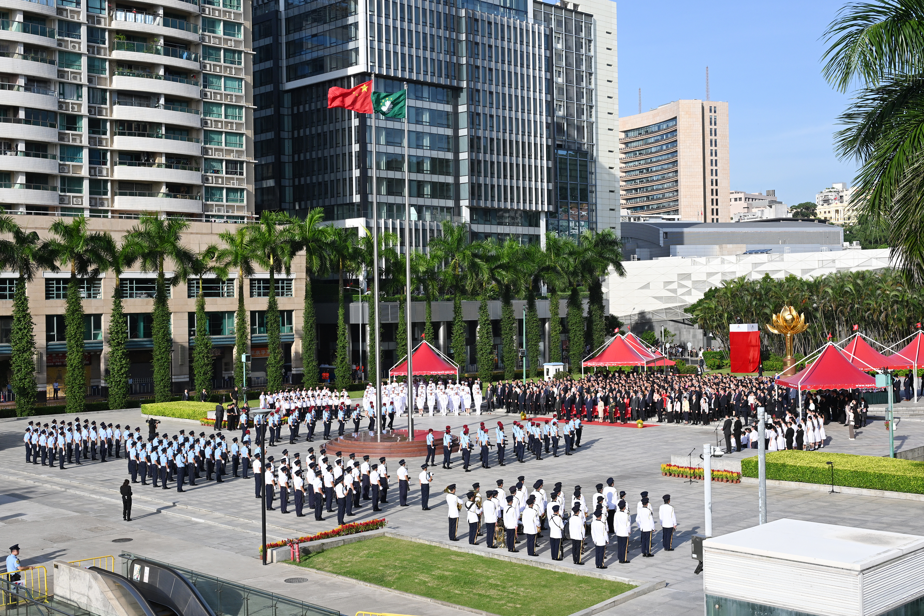 酒會前,特區政府於當天早上8時在金蓮花廣場舉行隆重的國慶日升旗儀式,行政長官伉儷、中央人民政府駐澳機構負責人、澳門特區立法及司法機關負責人、行政會委員、立法議員、特區政府官員、澳區人大代表、政協委員等約600人出席。