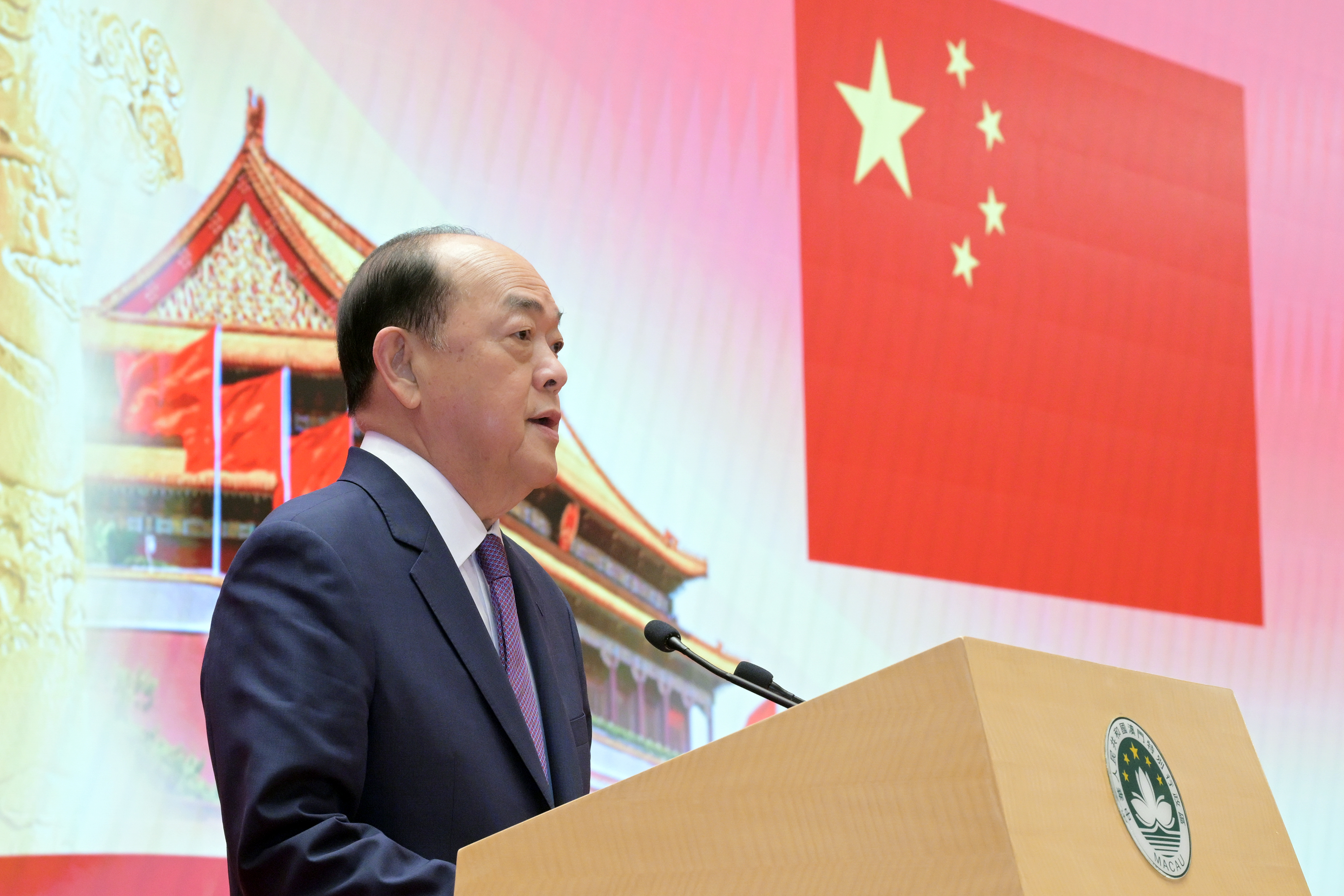 行政長官指出,過去五年來,在以習近平主席為核心的中央堅強領導下,特區政府團結社會各界和廣大居民協同奮進、變革創新,始終堅定不移、全面準確地貫徹「一國兩制」方針,堅定維護中央全面管治權,堅定維護國家主權、安全、發展利益,全面貫徹落實「愛國者治澳」原則,戰勝了前所未有的困難和挑戰,全力推動澳門特區各項事業邁上新台階: