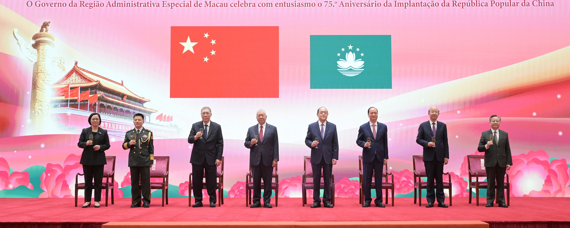 特區政府於國慶日舉行慶祝中華人民共和國成立75周年招待酒會。行政長官賀一誠致辭時表示,今年也是澳門回歸祖國25周年,25年來,國家把澳門作為掌上明珠,始終是澳門保持繁榮穩定的最堅強後盾,始終為澳門發展提供最大機遇。在中央的堅強領導下,在祖國內地的大力支持下,澳門特區歷屆政府和社會各界同心協力,開創了澳門歷史上最好的發展局面,譜寫了具有澳門特色的「一國兩制」成功實踐的華彩篇章。