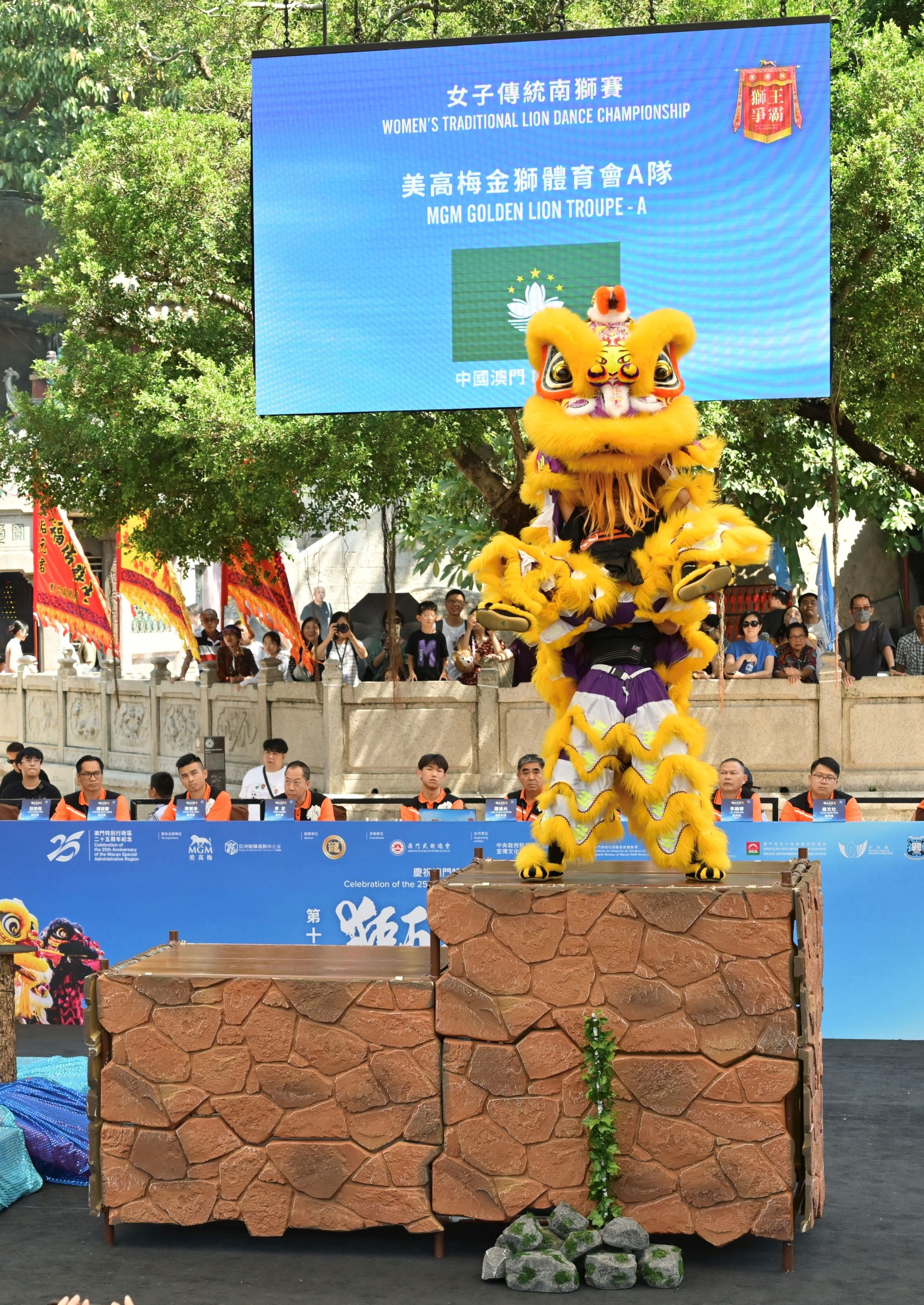 當日舉行的「女子傳統南獅賽」和「兒童組傳統南獅賽」亦看點十足,今年是歷屆以來最多女子隊伍參賽的一年,各位女獅運動員盡顯巾幗風采,最後由美高梅金獅體育會A隊奪得女獅王殊榮,而亞軍及季軍分別由新加坡藝威體育會及澳洲龍獅總會奪得;兒童組賽事則展現十足的活力,由澳門麥旨樑龍獅體育會贏得幼獅獅王之位,亞軍由緬甸龍的傳人龍獅團奪得,以及澳門業餘體育會獲得季軍。