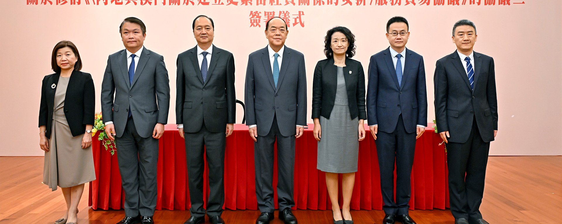 國家商務部國際貿易談判副代表李詠箑(副部長級)與經濟財政司司長李偉農於10月10日在澳簽署《關於修訂〈CEPA服務貿易協議〉的協議二》(《修訂協議二》),行政長官賀一誠及中央人民政府駐澳門特區聯絡辦公室鄭新聰主任見證簽署。《修訂協議二》自簽署日起生效,將於2025年3月1日起正式實施。