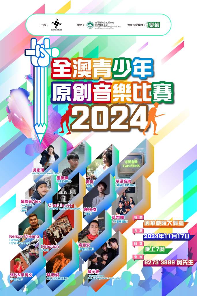 由澳門青年音樂協會主辦、文化發展基金資助的「全澳青少年原創音樂比賽 2024」將於11月17日假澳門國華戲院大舞台舉行。