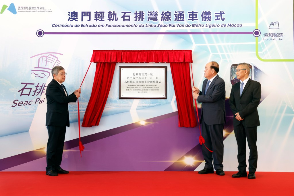 通車儀式於當天早上10時假輕軌協和醫院站舉行,並由行政長官賀一誠及運輸工務司司長羅立文主持。澳門輕軌股份有限公司董事會主席何蔣祺在致辭時表示,石排灣線的開通標誌著輕軌服務拓展至石排灣社區,便利該區居民更快捷、順暢地往來氹仔各區和媽閣一帶,並為想要出行石排灣和路環的市民和旅客提供新的交通選擇。未來隨著協和醫院的服務逐步拓展,使用人數將更多,樂見輕軌在大眾運輸中發揮更積極的作用。