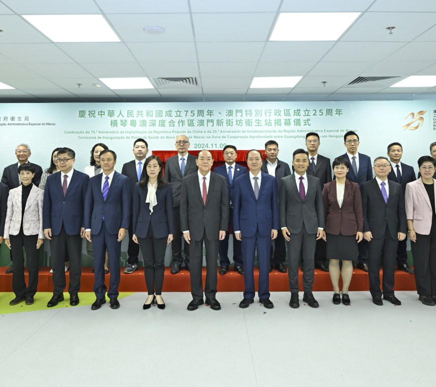 橫琴粵澳深度合作區澳門新街坊衛生站日前舉行揭幕儀式,澳門行政長官賀一誠、中央人民政府駐澳門特別行政區聯絡辦公室主任鄭新聰、澳門社會文化司司長歐陽瑜、廣東省衛生健康委員會黨組書記劉利群、澳門衛生局局長羅奕龍和副局長鄭成業,主持了衛生站的揭幕儀式。出席的嘉賓還包括來自內地、澳門特別行政區的政府部門、醫療機構及社團等共約60多名代表。