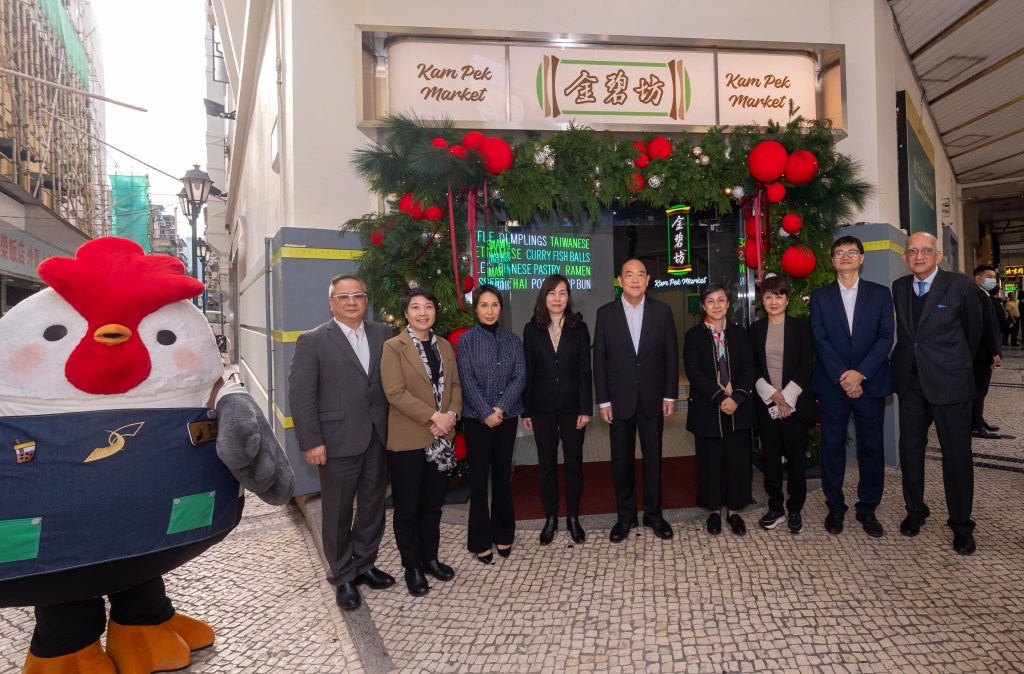 澳門行政長官賀一誠、社會文化司司長歐陽瑜、旅遊局局長文綺華、文化局局長梁惠敏、市政署市政管理委員會副主席羅志堅、經濟及科技發展局產業發展廳代廳長劉傑麟一行日前到訪「金碧坊」,聽取了澳娛綜合常務董事何超鳳介紹活化項目的理念和設計,並與現場的商戶親切交流。