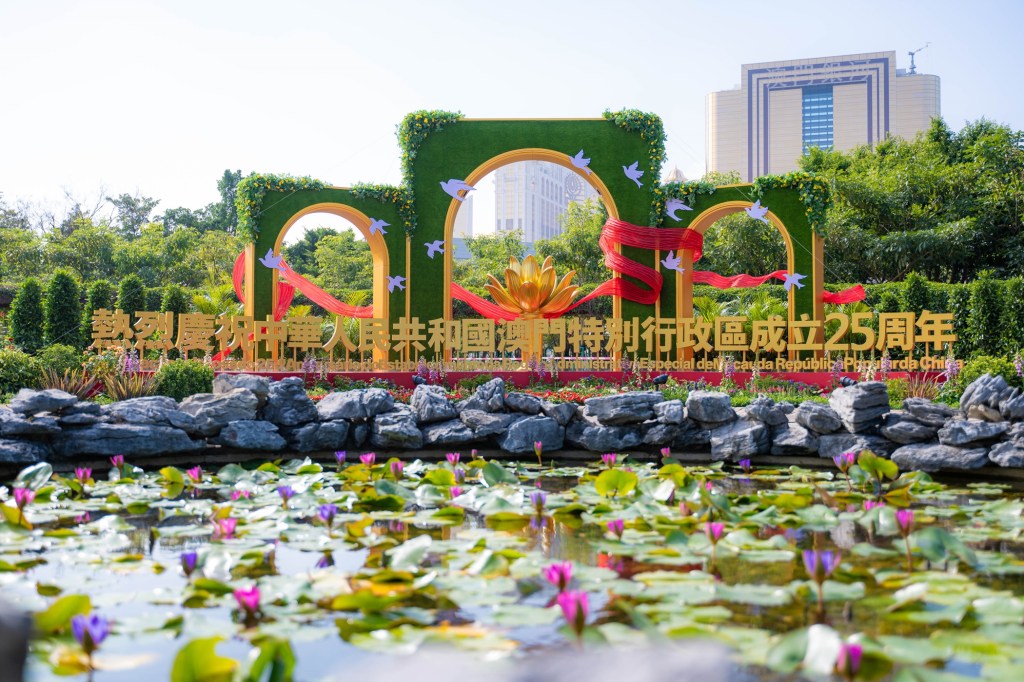 為慶祝澳門回歸祖國25周年,市政署於氹仔龍環葡韻設「回歸的旋律」主題花展,展期至明年一月五日,期間亦會在全澳多處擺放節慶花壇及綠化裝飾擺設,以及安排流動演出與市民及旅客互動,歡迎前往觀賞並感受節日氣氛。