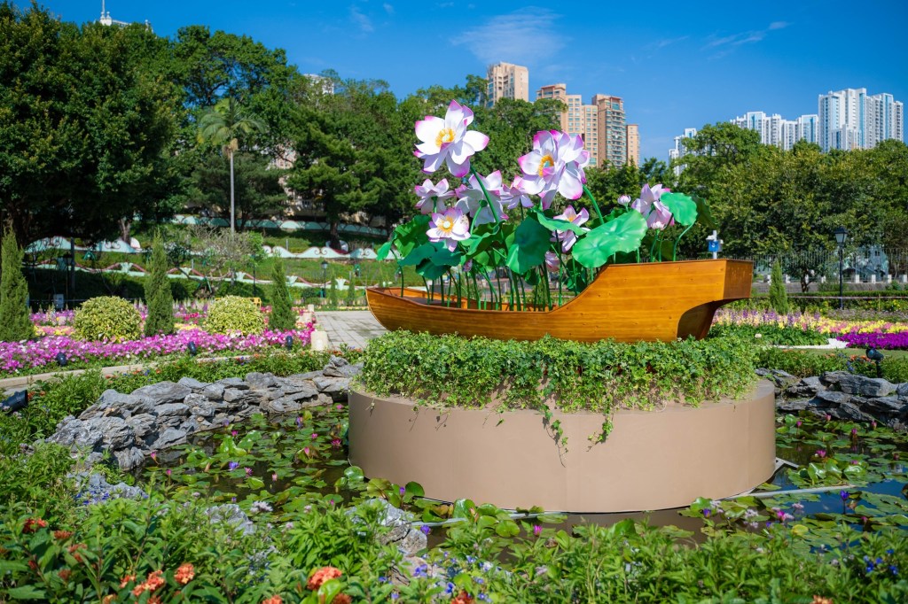 展場中的荷花古船造景不僅象徵著澳門沿海貿易的起源,也代表著澳門深厚的中華文化根基。荷花,以其純潔與希望的寓意,為整個慶典增添一份雅致。精美的境致將與大麗花的絢麗交相輝映,呈現出「文化澳門」的多元的魅力。