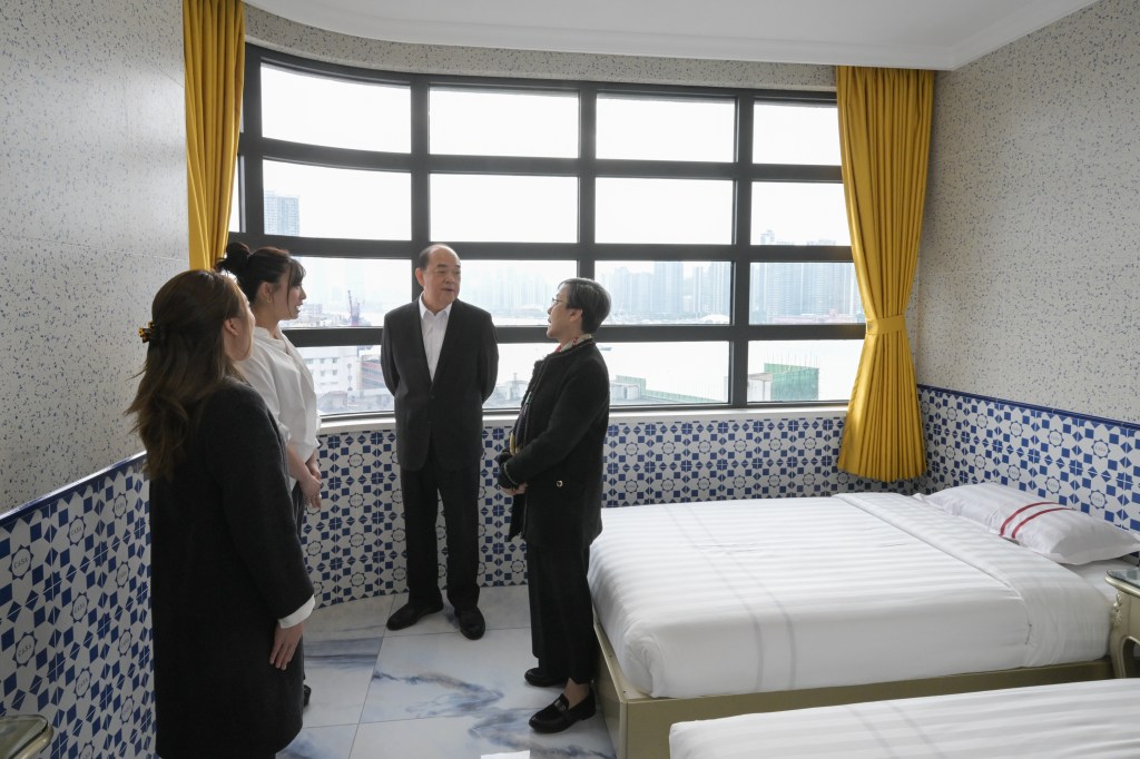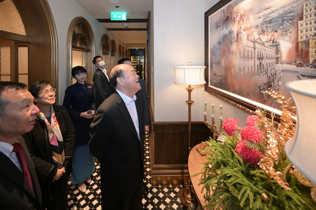 最後,行政長官在文綺華局長的陪同下,分別參觀了新馬路區的兩家活化酒店,瞭解設施的活化理念及改造過程,希望藉這標誌性地段牽動旅客人潮,延伸區域活化新機。