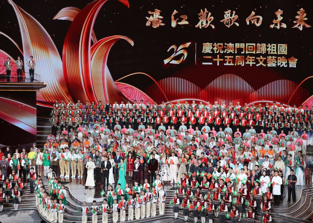 鏡海揚帆風正勁,濠江歡歌向未來。慶祝澳門回歸祖國25周年文藝晚會12月19日晚在澳門東亞運動會體育館舉行。中共中央總書記、國家主席、中央軍委主席習近平觀看了演出。