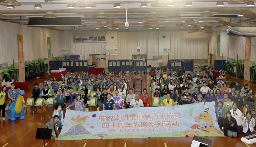 為慶祝澳門童軍第四旅成立四十年,第四旅一眾童軍於十一月二十四日在澳門蔡高中學舉辦「百龍玩轉樹林40π」旅慶活動。活動邀請了澳門童軍總會周成俊澳門總監蒞臨並致辭訓勉,總會各級領導、友好旅團、旅員及家長一同參與,活動參與人數逾百人。