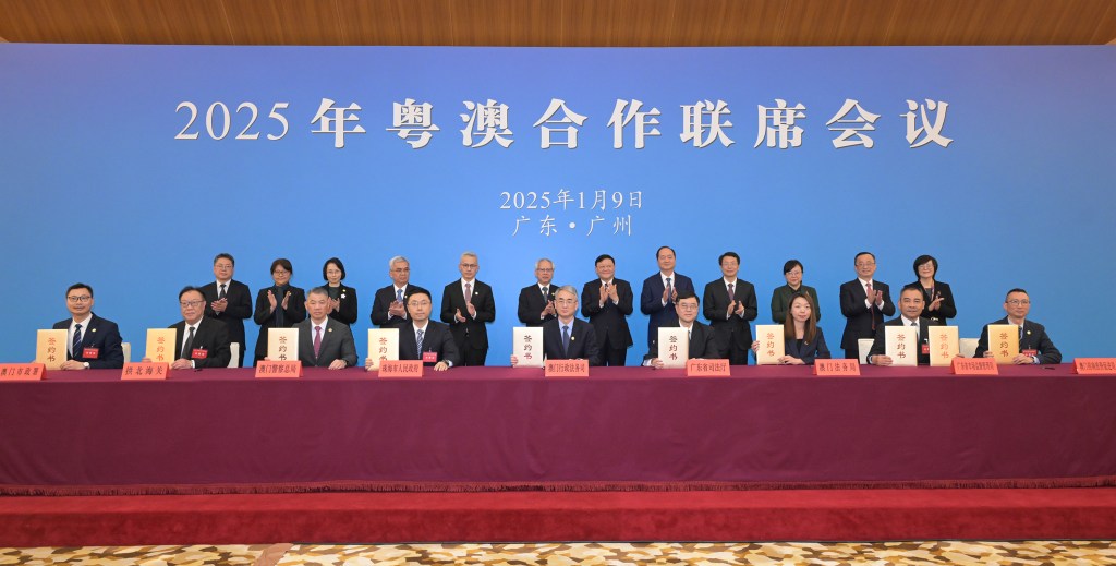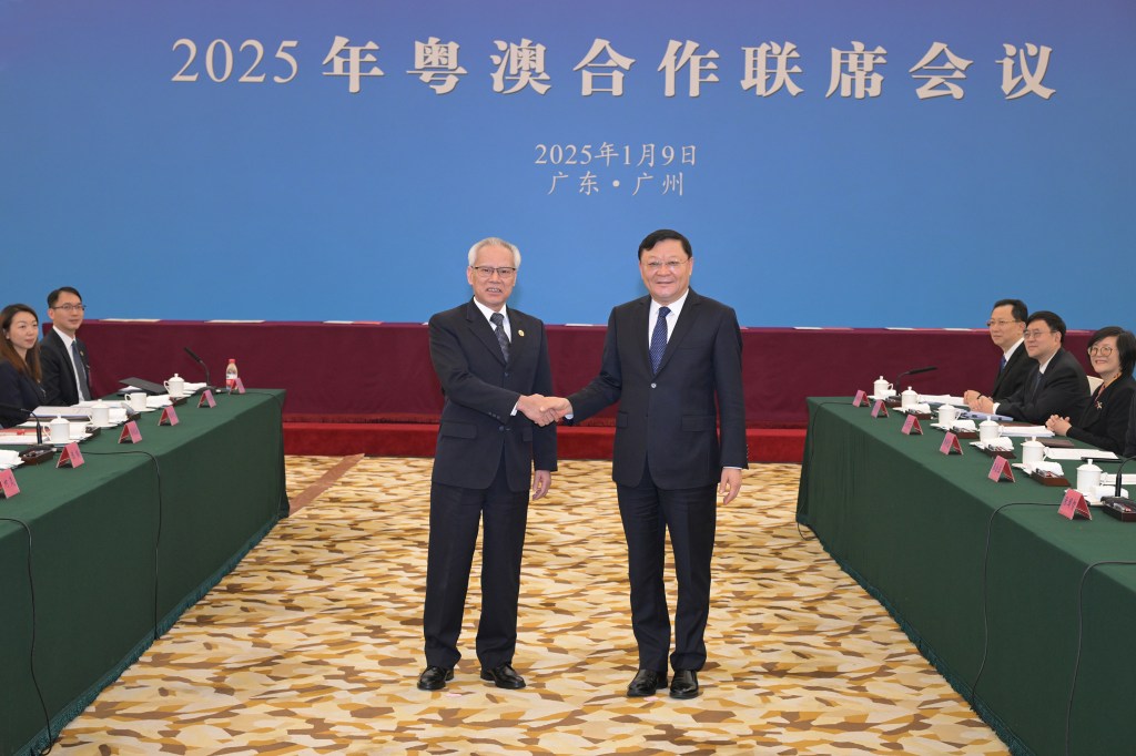 2025年粵澳合作聯席會議於1月9日在廣州舉行,行政長官岑浩輝和廣東省省長王偉中分別率領兩地政府代表團出席會議。雙方總結肯定在粵澳兩地政府共同努力下,橫琴粵澳深度合作區的建設取得重要階段性成果,粵港澳大灣區各項建設工作紥實推進,兩地攜手推動粵澳合作邁向更高水平、更深層次、更多領域的新階段。展望未來,雙方要從國家發展戰略全局出發,更好發揮「一國兩制」制度優勢,深度整合粵澳兩地優質資源,讓粵澳合作的果實更為豐碩靚麗。