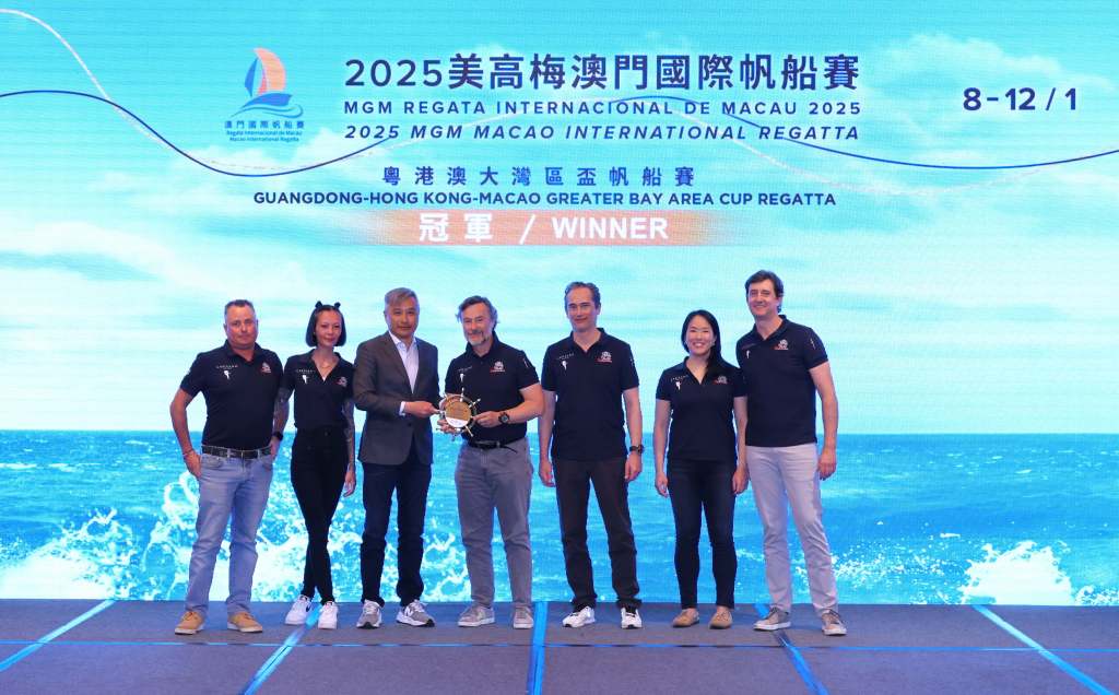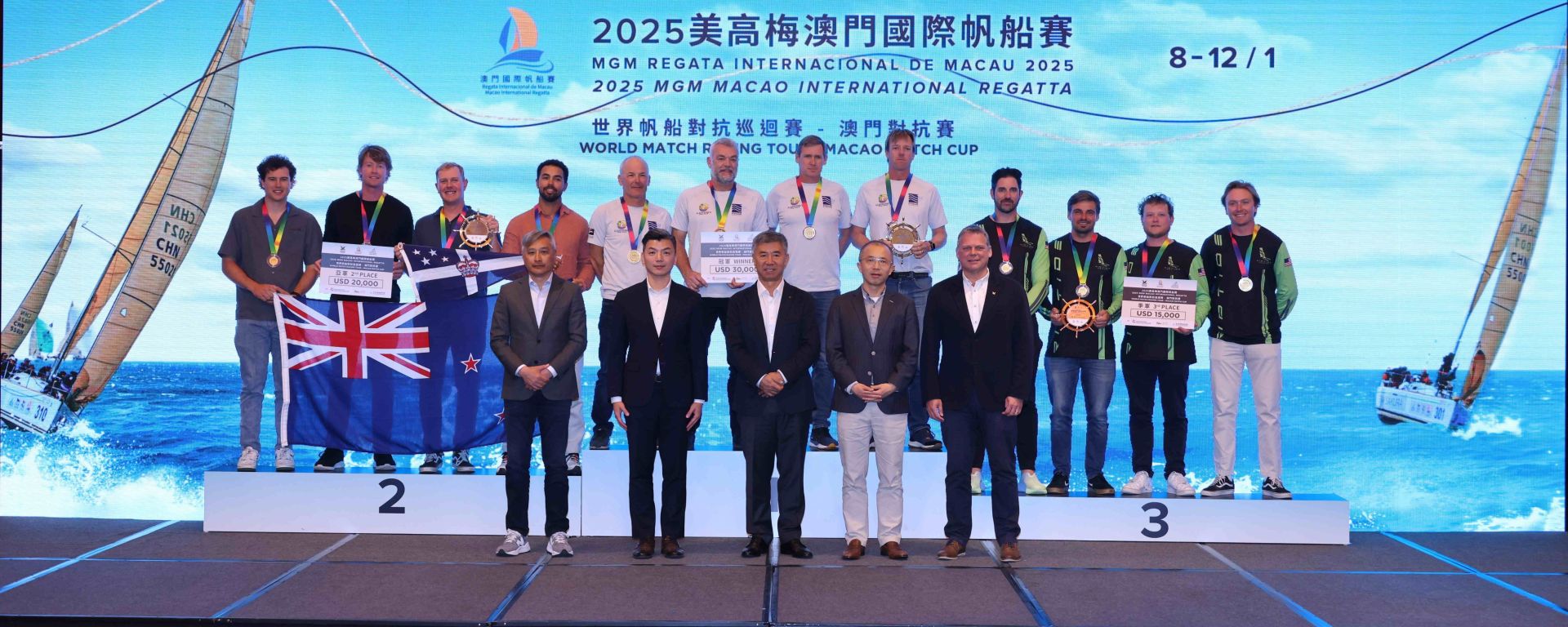 「2025美高梅澳門國際帆船賽」於1月12日上演壓軸賽事,經一輪競逐後,「世界帆船對抗巡迴賽–澳門對抗賽」總冠軍由英國的伊恩.威廉姆斯(Ian Williams)帶領的船隊奪得。「蓮花盃帆船賽」(IRC組)總冠軍由土耳其Ravenol Sailing Team奪得,而「粵港澳大灣區盃帆船賽」(IRC組)總冠軍則由中國香港的CAPITANO奪得。