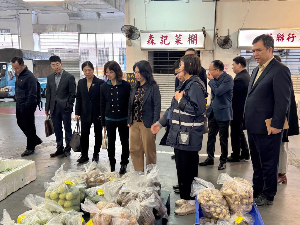 在澳期間,李娜副司長一行考察了澳門新批發市場和沙梨頭街市,了解各類產品的供應及經營情況,並與市政管理委員會周偉迎主席及吳秀虹委員等進行交流座談,了解澳門市場生鮮物資的需求和保障情况,多項措施進一步保障澳門生鮮物資穩定供應。