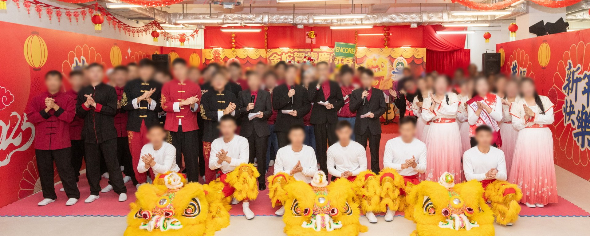 首場春節聯歡會在1月15日上午舉行,邀請多個政府部門及社服機構代表出席,並由保安司司長黃少澤、懲教管理局局長程况明及澳門明愛總幹事潘志明共同主持醒獅點睛儀式。隨着鑼鼓聲響起,春節聯歡會正式拉開序幕,由在囚人演出的節目輪番登場,包括舞獅、多國語言大合唱、旗舞、中國武術和傘舞,以及獻唱自創歌曲等表演。豐富精彩的表演,充分展示了在囚人的才藝,獲得了全場熱烈的掌聲。最後,聯歡會在溫馨歡樂的大合唱中圓滿結束。