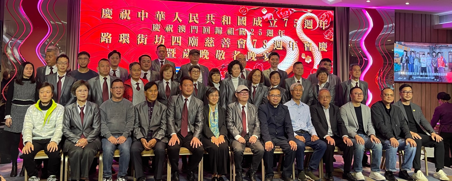 路環街坊四廟慈善會一月十八日在港澳德興火鍋海鮮酒家舉行慶祝成立七十八周年會慶暨歲晚敬老聯歡晚宴,免費招待離島長者出席聯歡。中聯辦協調部二級巡視員布志光,旅遊局局長文綺華,體育委員嚴耀庭,懲教管理局處長林凱澤,澳門海關沿岸巡邏處處長黃永明,社工局氹仔及路環社會工作中心主任溫秀紅,治安警察局海島警務廳警司陳國祿,消防局處長沈家豪,保安高校副一等消防區長譚健明等嘉賓出席主禮。負責人勉勵全體成員再接再厲,發揚愛國愛澳的優良傳統,秉承「敬老育青及服務社會」宗旨,配合政府做好路環廟宇管理、保育工作,為弘揚廟宇文化,加強社區服務及旅遊業發展作貢獻。