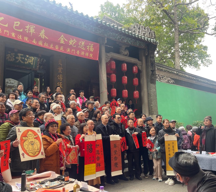 由澳門書法院、南國紅豆藝苑、澳門佛教書畫會合辦的「乙巳揮春 · 金蛇送福」活動,春節前在普濟禪院前地舉行,多位書畫界名家參與,書寫揮春及對聯等,送福予有緣人。