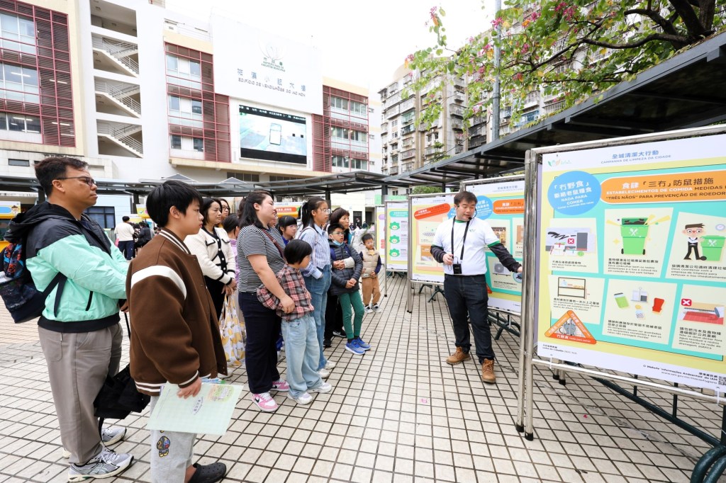 全城清潔大行動橫跨4月至5月,期間會加強巡查及抽檢食肆、食品加工場及建築工地,亦會一連9周於全澳多個社區巡迴設置圖片展介紹環境衛生資訊,並於周六及周日設諮詢街站向居民提供防治老鼠的技術意見、對「三無」大廈作重點宣導等,而5月10日將在三盞燈及新橋區一帶進行另一場社區清潔及宣導活動。詳情可於環境資訊網(www.iam.gov.mo/macaohygiene)查閱。