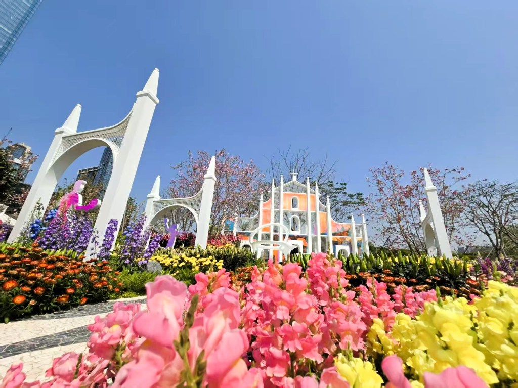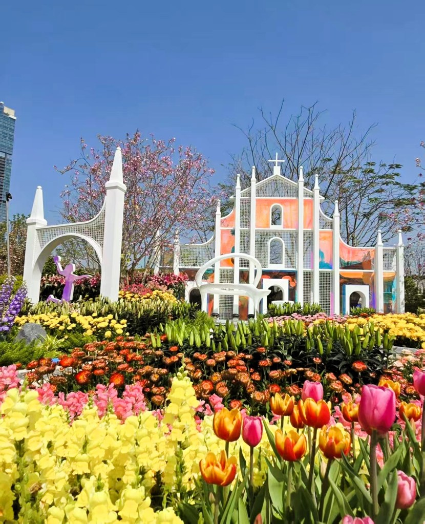 2025粵港澳大灣區花園大賽由3月28日至4月6日在深圳筆架山體育公園舉行,澳門園區以大三巴牌坊作為視覺設計主軸,配以主路徑的葡式碎石路,象徵澳門深厚文化底蘊。展場中間設置了一座雕塑打卡點─空中風鈴舞臺,是花展區的亮點之一,宛若花語交響的音樂會現場,彰顯了澳門作為東亞文化之都的獨特魅力。澳門園區內同時樹立象徵運動員英姿的剪影,藉此宣傳第十五屆全國運動會(澳門賽區)。