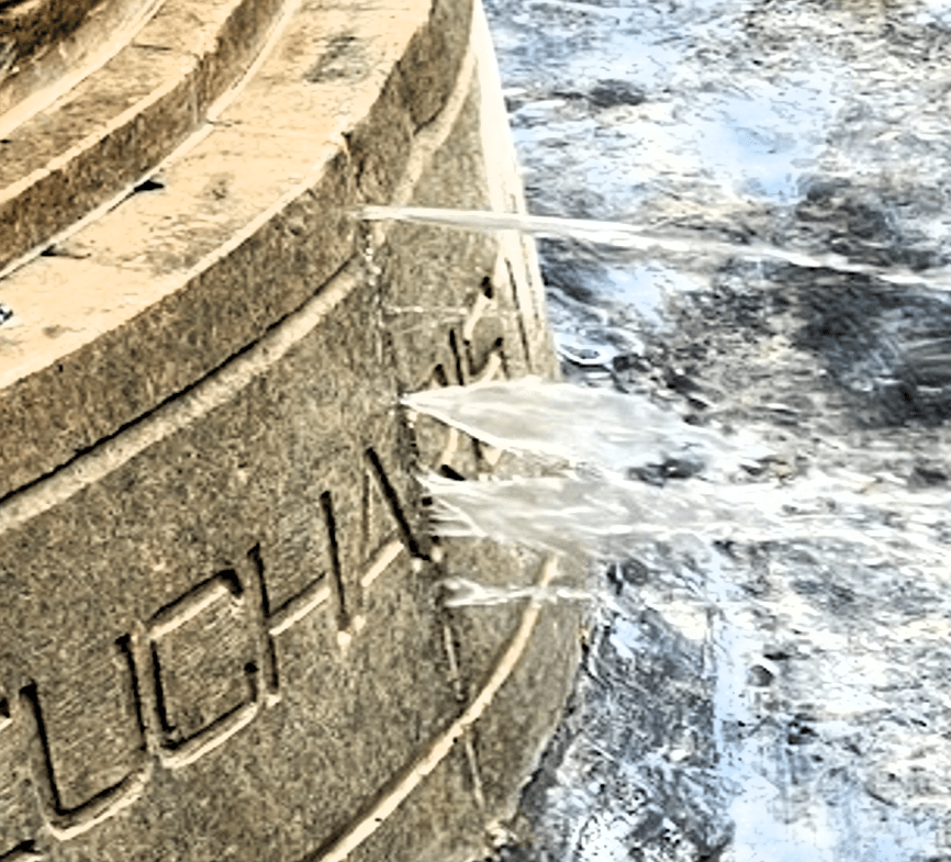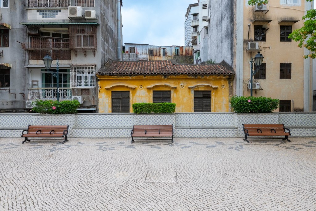大堂前地及大廟腳巷兩側範圍,設有具有歐式元素的仿古石雕噴水池,以及貼有葡式青花瓷磚及壁畫的花圃,是居民及旅客閒坐、拍照的熱門地點。由於已使用超過二十年,設施已老化破損。當中,噴泉部份供水管道因生鏽阻塞,導致未能噴水;水池池壁漏水等不同程度破損,難以局部修繕。同時,大堂前地周邊花圃及石凳飾面老化,多處石材出現裂縫及剝離狀況,以致防水失效,令圍牆石壁出現明顯水垢及污漬、牆身油漆褪色及剝落、瓷磚壁畫龜裂破損等。