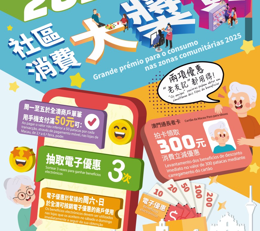 由特區政府聯同商會於3月24日至6月1日合辦為期10周的「2025年社區消費大獎賞」大型促消費活動已於日前啟動。活動期間,市民可透過移動支付,在周一至周五單筆消費滿50元,即可抽取電子優惠3次(每個實名認證錢包帳戶每周抽取優惠上限3次),抽取優惠機會每周六凌晨清零。另外,長者更可同時領取消費立減優惠,而截至4月5日下午5時已有逾8.4萬名長者完成拍卡領取優惠。