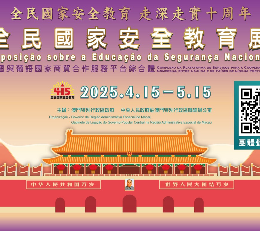 澳門特別行政區政府與中央人民政府駐澳門特別行政區聯絡辦公室將連續第八年舉辦「全民國家安全教育展」,歡迎市民在4月15日至5月15日期間,前往澳門孫逸仙大馬路中國與葡語國家商貿合作服務平台綜合體參觀。團體亦可透過專題網站報名參觀及預約現場導賞服務。