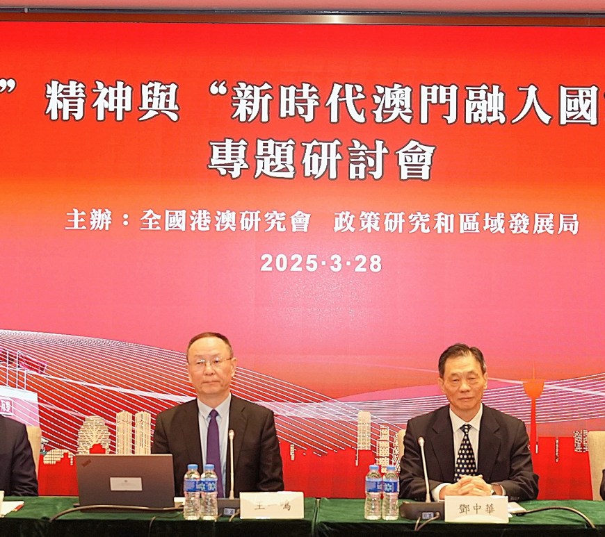 由全國港澳研究會與澳門政策研究和區域發展局聯合舉辦的全國「兩會」精神與「新時代澳門融入國家發展大局」專題研討會日前在「中國與葡語國家商貿合作服務平台綜合體」多功能會議廳舉行。