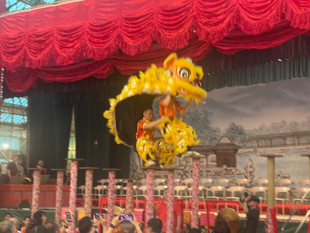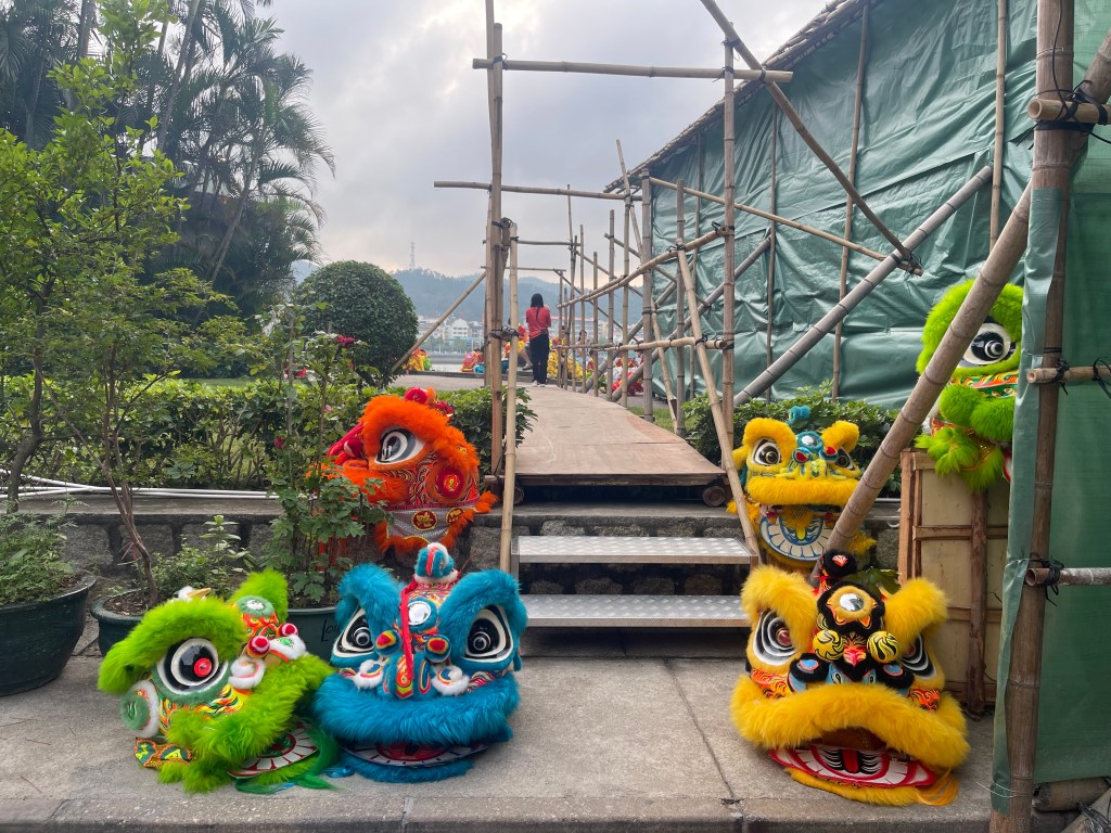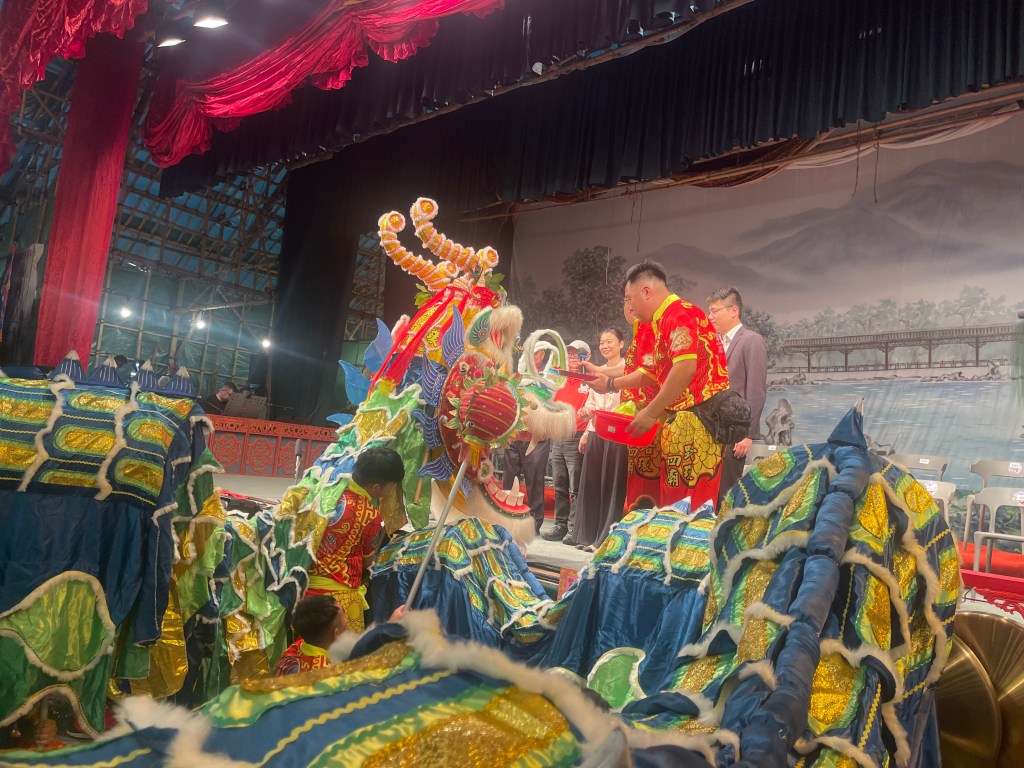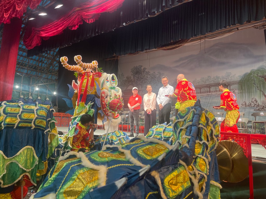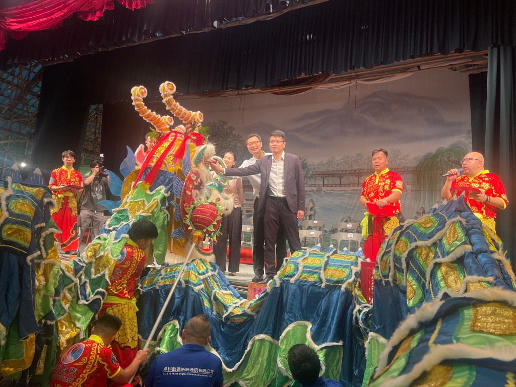 隨後,黃偉天與永遠主席黃文生、副主席張英、理事長陳愛蓮等負責人陪同出席嘉賓主持金龍、醒獅簪花掛紅、點睛、灑淨及鳴炮儀式,路環街坊四廟慈善會體育會及香港毅勇龍獅團龍獅表演助興,場面熱鬧。