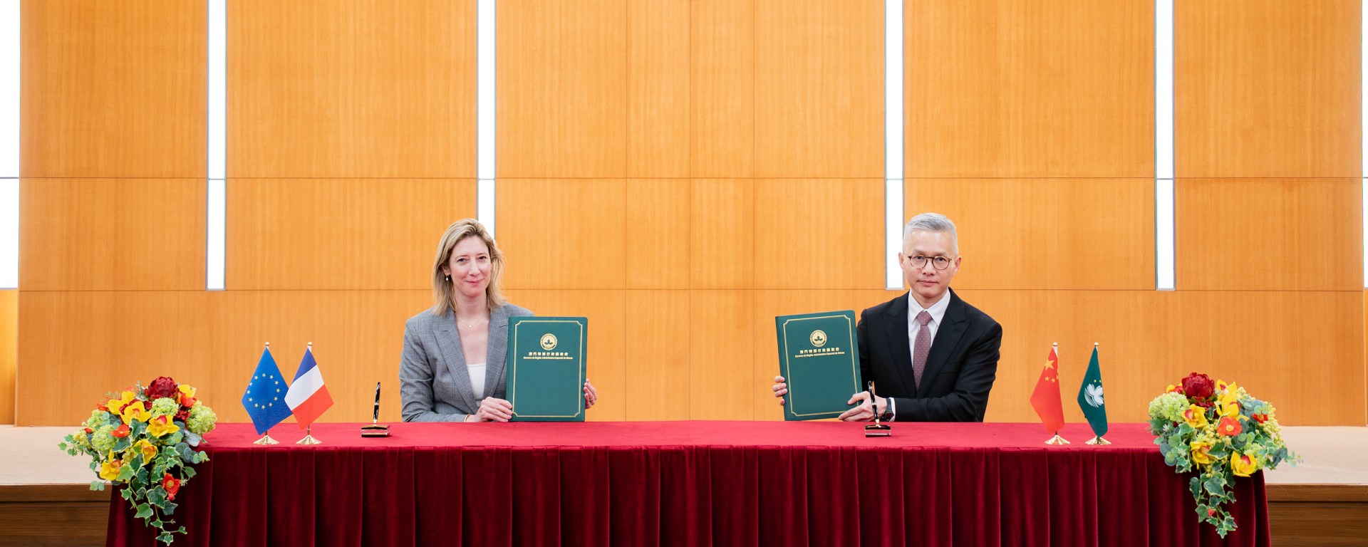 經濟財政司司長戴建業代表特區政府與法國政府代表法國駐香港總領事館總領事杜麗緹於5月8日在澳門簽署了《中華人民共和國澳門特別行政區政府和法蘭西共和國政府有關執行科研合作計劃的協議》。該協議旨在加強雙方在科研領域的交流與合作,促進科技創新和人才培養,是澳門著力打造更高水平對外開放平台的重要進展。外交公署副特派員孫向陽出席,以及高校、科技企業、法國及歐洲商會等機構代表近40人出席簽署儀式。