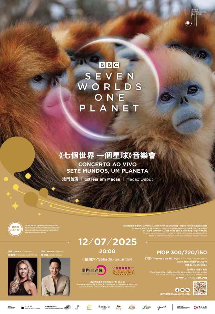 由文化局、澳門樂團有限公司及銀河娛樂集團共同呈獻之澳門樂團2024-25樂季重磅演出——BBC《七個世界 一個星球》音樂會,將於7月12日(星期六)晚上8時在「澳門百老匯」之「百老匯舞台」隆重獻演。音樂會精選英國BBC同名紀錄片的精華片段,由澳門樂團演奏奧斯卡配樂大師漢斯.森瑪與艾美獎得主積及.斯雅創作的配樂,並配以現場旁述,透過超高清LED屏幕呈現地球七大洲的壯麗奇觀,向觀眾呈獻一場視聽交融的沉浸式體驗,門票現正於澳門售票網公開發售。