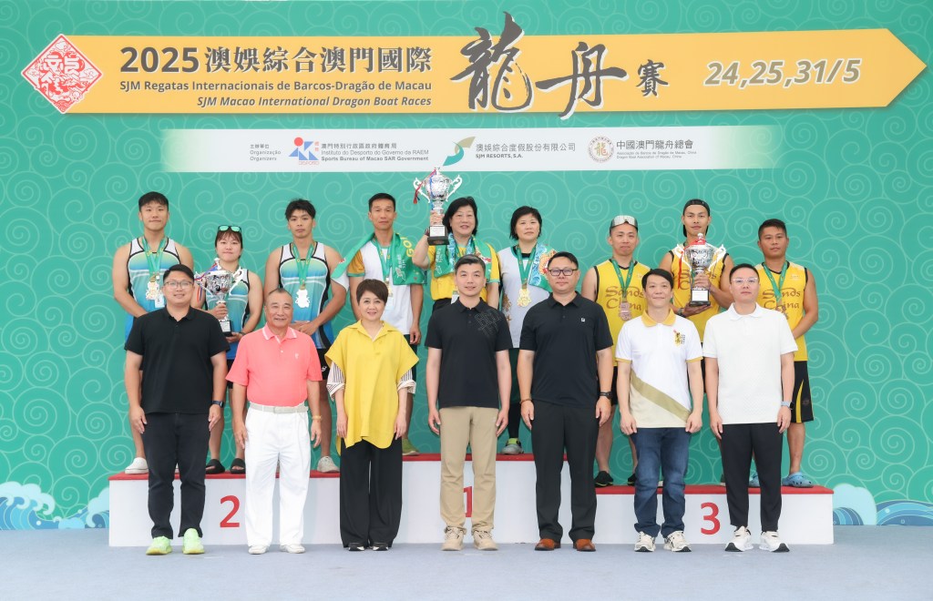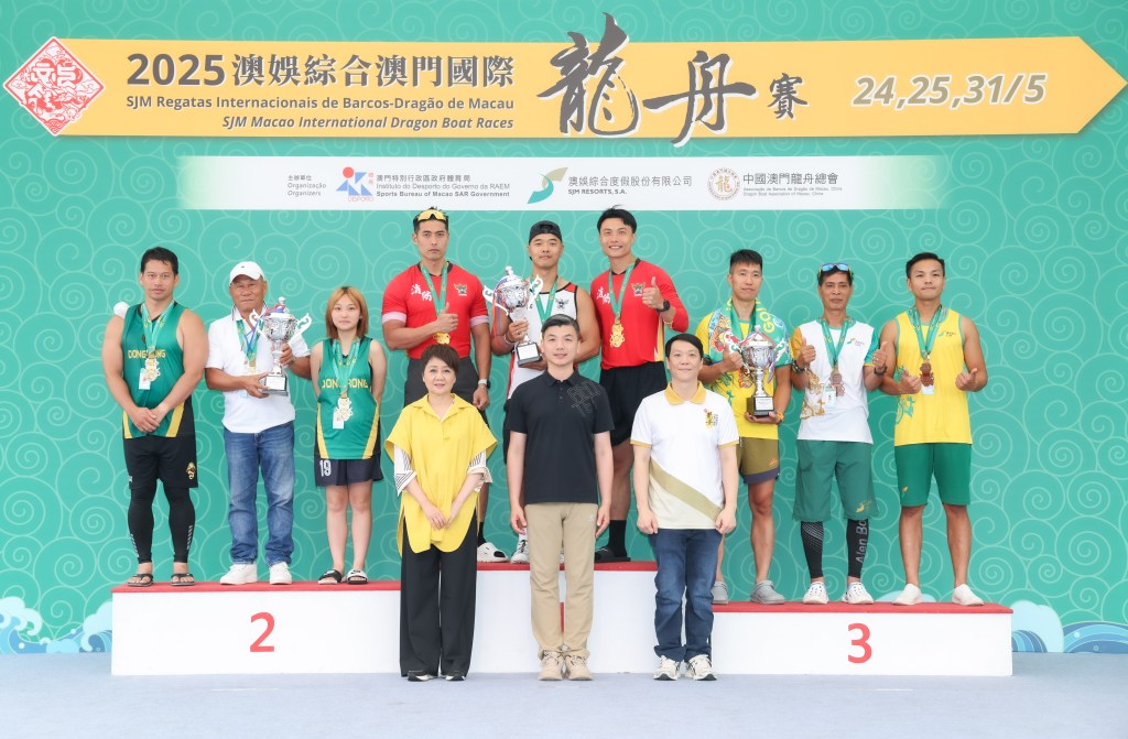 由體育局、澳娛綜合度假股份有限公司及中國澳門龍舟總會主辦,市政署及行政公職局協辦的「2025澳娛綜合澳門國際龍舟賽」,於5月25日在南灣湖水上活動中心上演澳門標準龍公開組及女子組賽事。經過連場激戰,消防局繼5月24日小龍賽公開組及政府部門小龍賽奪冠後,再奪得澳門標準龍公開組冠軍,成為三冠王,通利建置則奪得澳門標準龍女子組冠軍,而今年新增的混合組由澳娛綜合金禧奪冠。5月31日端午節正日將進行多場精彩賽事,包括邀請賽標準龍公開組、女子組及大學生500米的賽事。