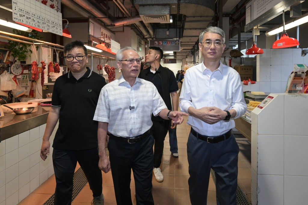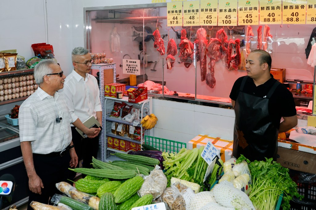 岑浩輝當天上午首先前往沙梨頭街市市政綜合大樓,在行政法務司司長張永春陪同下,與街市層多位檔販交流,了解銷情及營運狀況,又到訪美食廣場與居民和旅客交談,他鼓勵食店店主要不斷嘗試創新,發掘特色之處,以吸引更多客人。