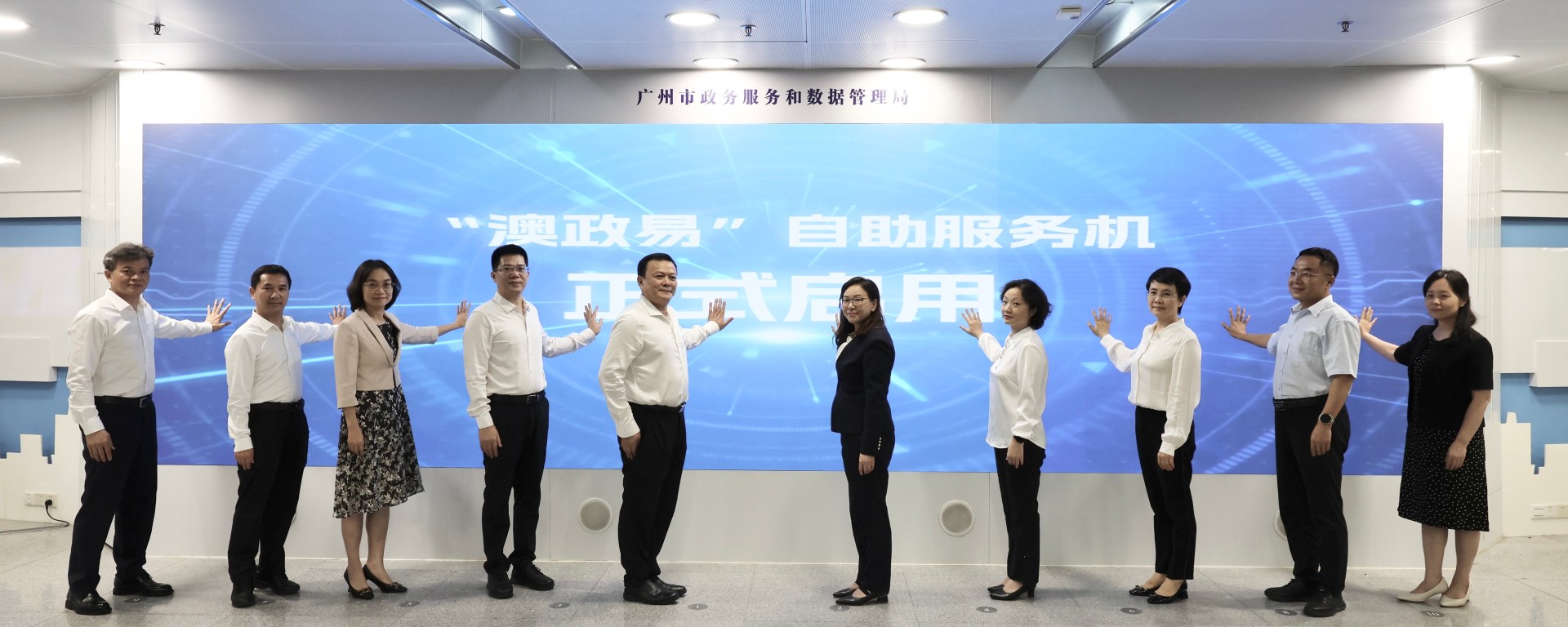 啟用儀式於廣州市政務服務中心舉行,由廣東省政務服務和數據管理局黨組成員魏文濤、澳門身份證明局代局長羅翩卿、廣州市人民政府副秘書長葉珊瑚、廣州市政務服務和數據管理局黃津局長、廣州市人民政府港澳事務辦公室二級巡視員阮曉紅、珠海市人民政府副秘書長王玲萍、珠海市政務服務和數據管理局鄭大鵬局長、中山市政務服務和數據管理局黨組書記葉永忠、江門市人民政府副秘書長岑明俸、江門市政務服務和數據管理局元小文局長聯合主持。