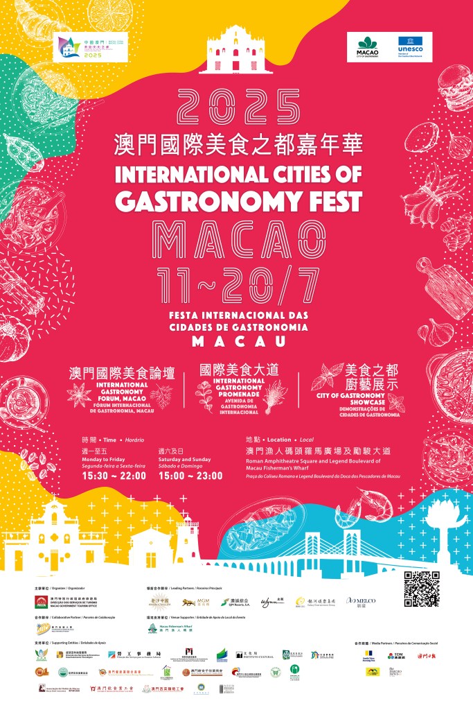 旅遊局主辦的「2025澳門國際美食之都嘉年華」將於7月11至20日在澳門漁人碼頭羅馬廣場及勵駿大道舉行,今年活動以「香料及香草」為題,聯動6大洲21個國家的34個「創意城市美食之都參與,各方合力打造為期10天集環球美食、廚藝展示及美食論壇3大亮點於一身的國際級美食文化饗宴,融合旅遊與美食、文化、傳承及創新,向世界展現澳門作為「創意城市美食之都」的獨特魅力及平台優勢。