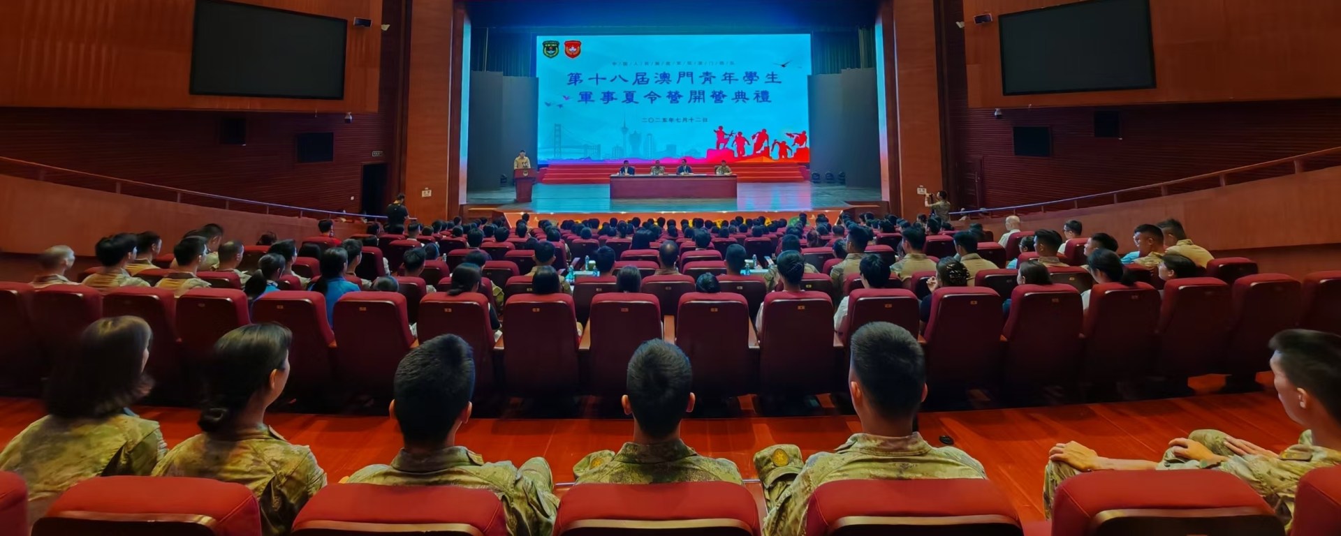 由澳門特區政府與中國人民解放軍駐澳門部隊合辦、教育及青年發展局承辦的「第十八屆澳門青年學生軍事夏令營」於7月12至18日在駐澳部隊氹仔軍營進行。中國人民解放軍駐澳門部隊參謀長邵春貴、法律處處長賀文軍、教青局局長龔志明、副局長黃嘉祺、學校領導及代表,以及來自34所高等院校及非高等教育學校,共159名澳門青年學生出席了7月12日的開營禮。