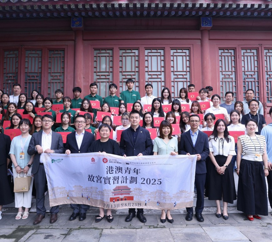 由澳門文化局、香港民政及青年事務局與故宮博物院聯合主辦的「港澳青年故宮實習計劃2025」,於8月22日在北京故宮博物院文化資產數字化應用研究所舉行結業禮,標誌著為期六周的實習活動圓滿結束,故宮博物院常務副院長婁瑋、澳門駐京辦事處主任梁潔芝、香港駐京辦事處副主任阮慧賢及澳門文化局代表等出席。