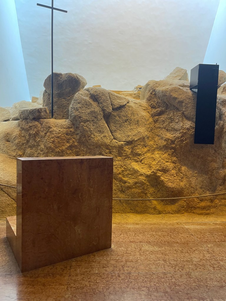 納骨龕特別以義大利橘紅色大理石製作,並用玻璃展櫃呈現部分骸骨,象徵聖潔與永恆。墓室內大理石祭壇上豎立著十字架與聖體龕,營造出莊嚴濃烈的宗教氛圍。墓室入口外設有解說牌,記載著安葬於此的殉教者名單,讓參觀者在瞻仰遺骨同時,亦能感受那段信仰堅貞的歷史。