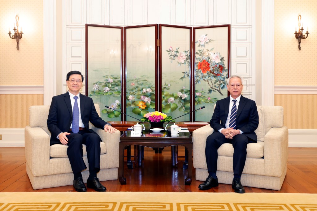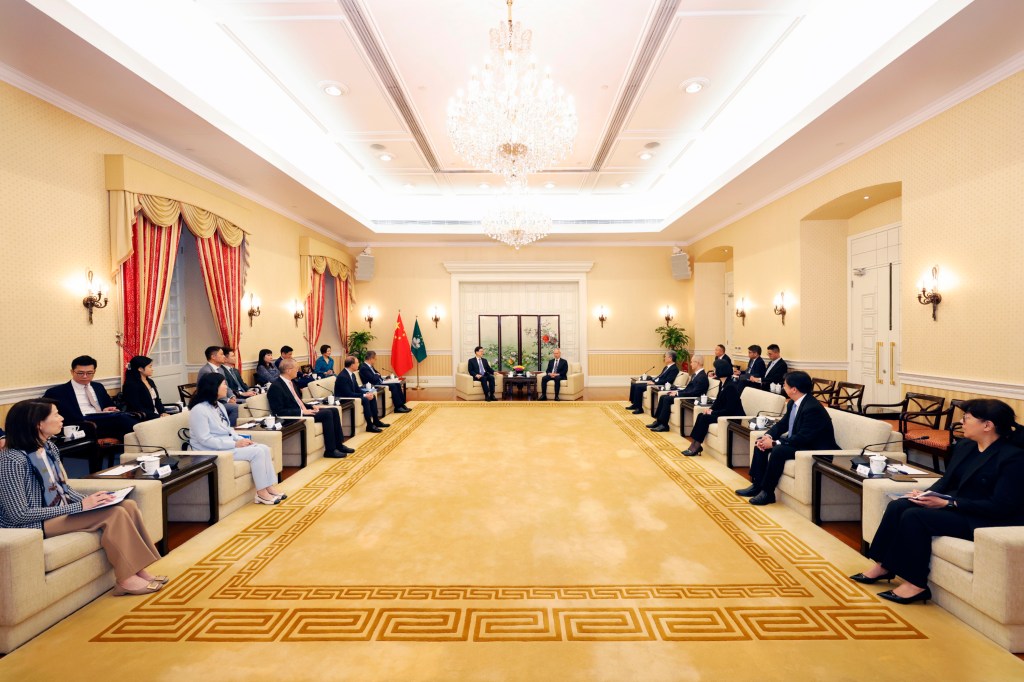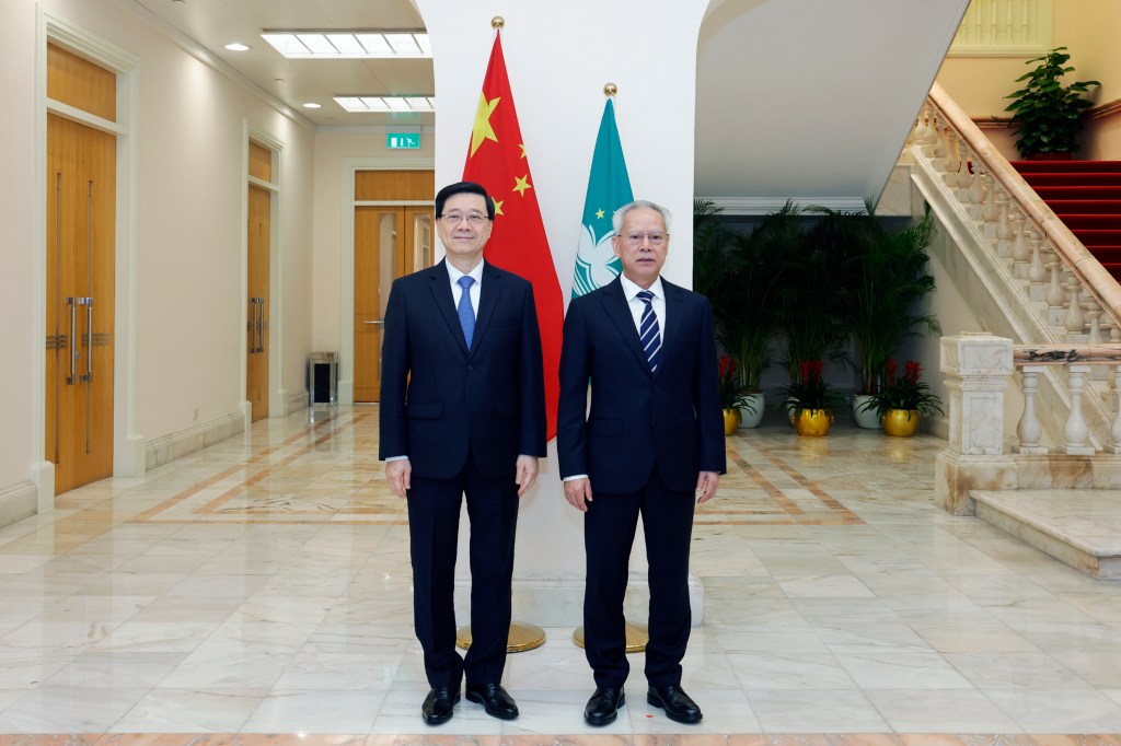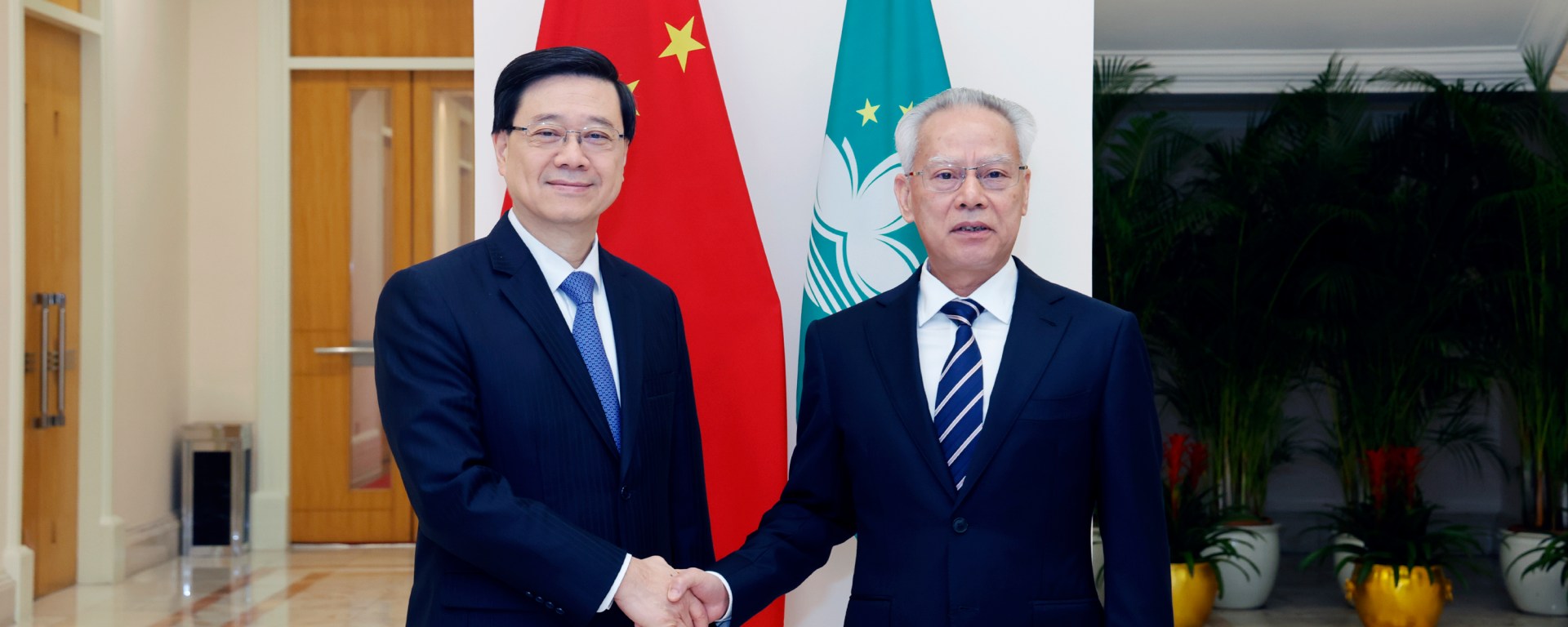 行政長官岑浩輝於8月5日在政府總部與香港特別行政區行政長官李家超會面,雙方就進一步強化包括旅遊協同發展在內的多領域港澳合作、助力粵港澳大灣區高質量發展,以及橫琴粵澳深度合作區第二階段建設新機遇等議題進行深入交流。