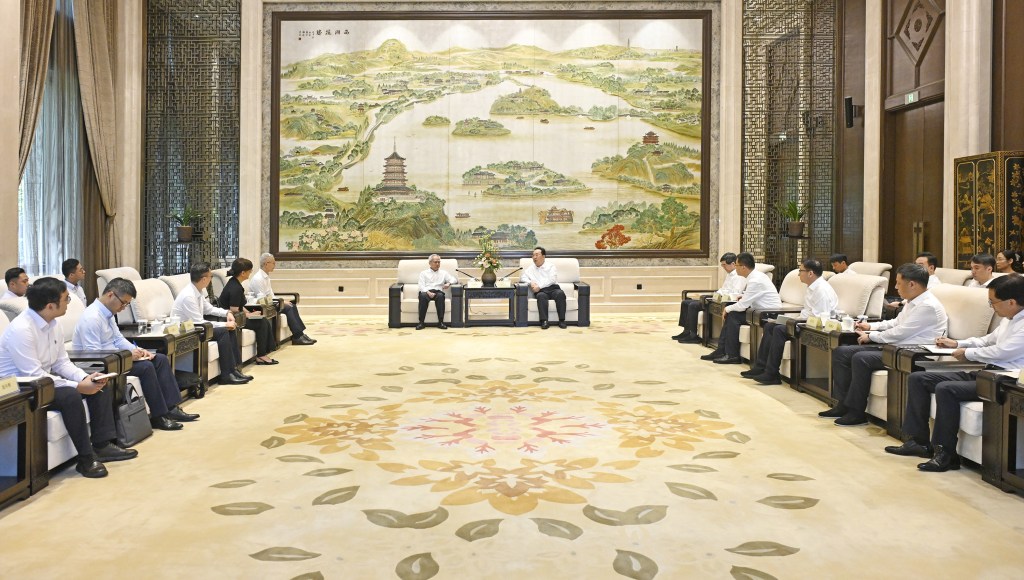 8月17日,岑浩輝與浙江省委書記王浩等領導會晤,回顧浙澳長期以來在經貿、文旅、教育等領域的務實合作,強調今後要發揮各自優勢,持續拓展科技、青年、產業等多方面的交流,並攜手助力國家發展大局。會前,岑浩輝一行還考察了杭州高新技術企業,了解其研發和市場開拓經驗。