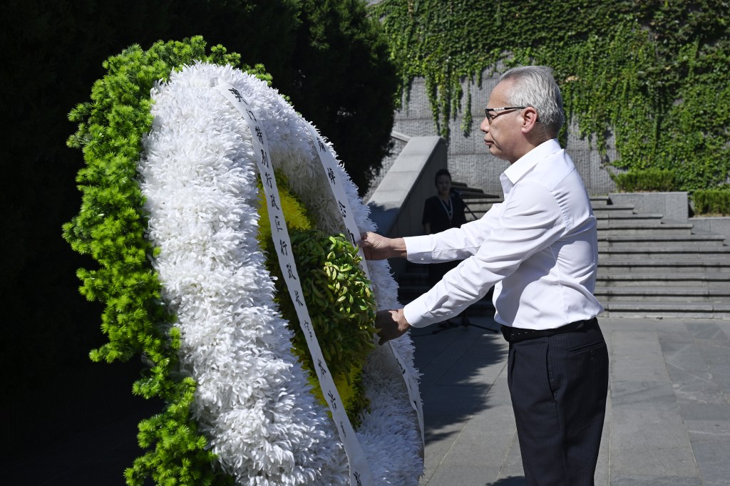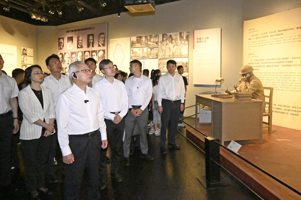 在江蘇南京考察的行政長官岑浩輝於8月20日專程前往侵華日軍南京大屠殺遇難同胞紀念館參謁,向遇難同胞默哀並敬獻花圈,藉此銘記歷史、緬懷先烈。