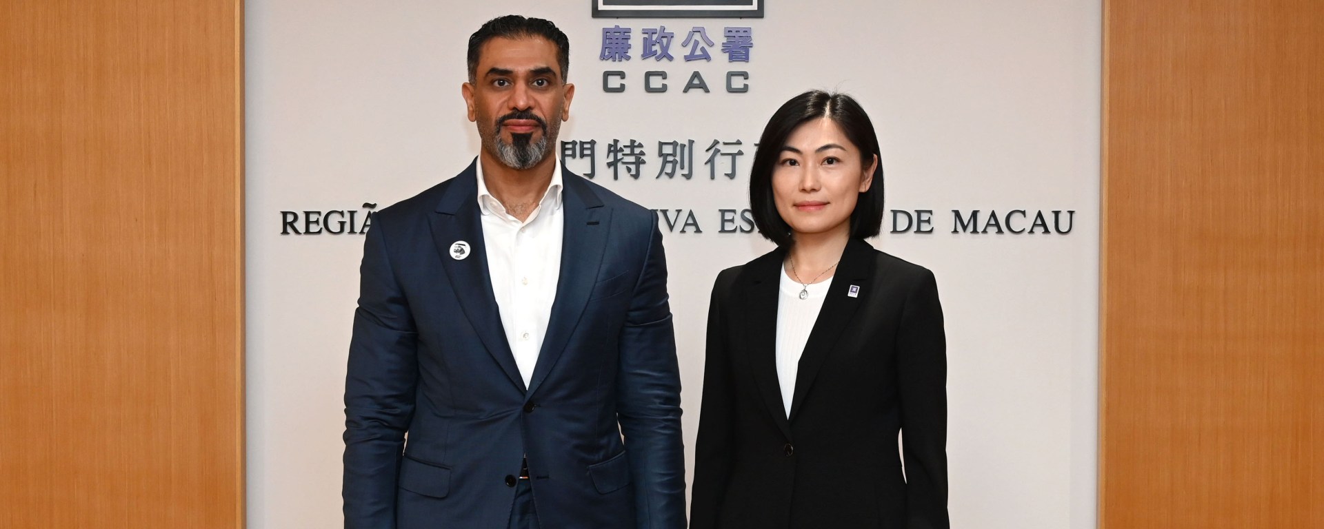 廉政專員歐陽湘及審計長歐陽瑜於9月19日分別會見來澳訪問的阿拉伯聯合酋長國(阿聯酋)問責局主席胡邁德‧奧貝德‧阿布西布斯(H.E. Humaid Obaid Abushibs),就廉政建設及公共審計工作進行交流,期望進一步拓展合作,共同推動廉潔及審計專業的發展。