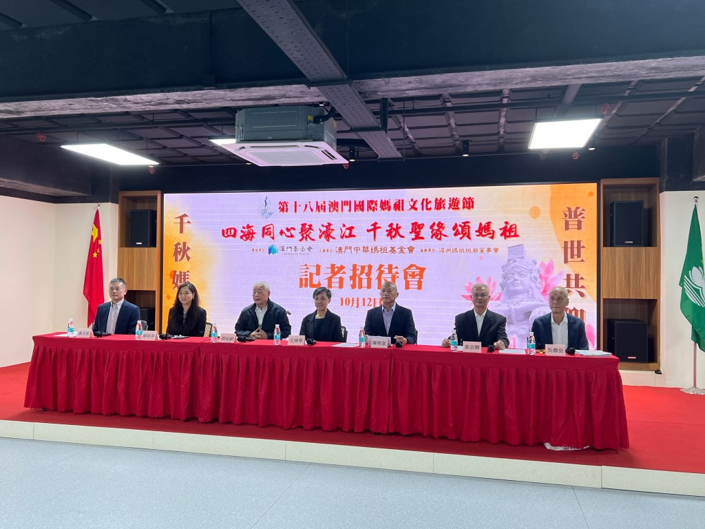 由澳門中華媽祖基金會主辦,湄洲媽祖祖廟董事會協辦,澳門基金會資助,以「千秋媽祖 普世共仰」為主題的「第十八屆澳門國際媽祖文化旅遊節」,將於十月二十六至二十九日舉行,今屆活動邀請包括台灣代表人士在內的近千名海內外嘉賓出席,並邀請福建省歌舞劇院、泉州市文旅局作專場文藝演出。活動亮點有開幕式暨媽祖祭典、大型主題晚會、媽祖金身繞境祈福等。